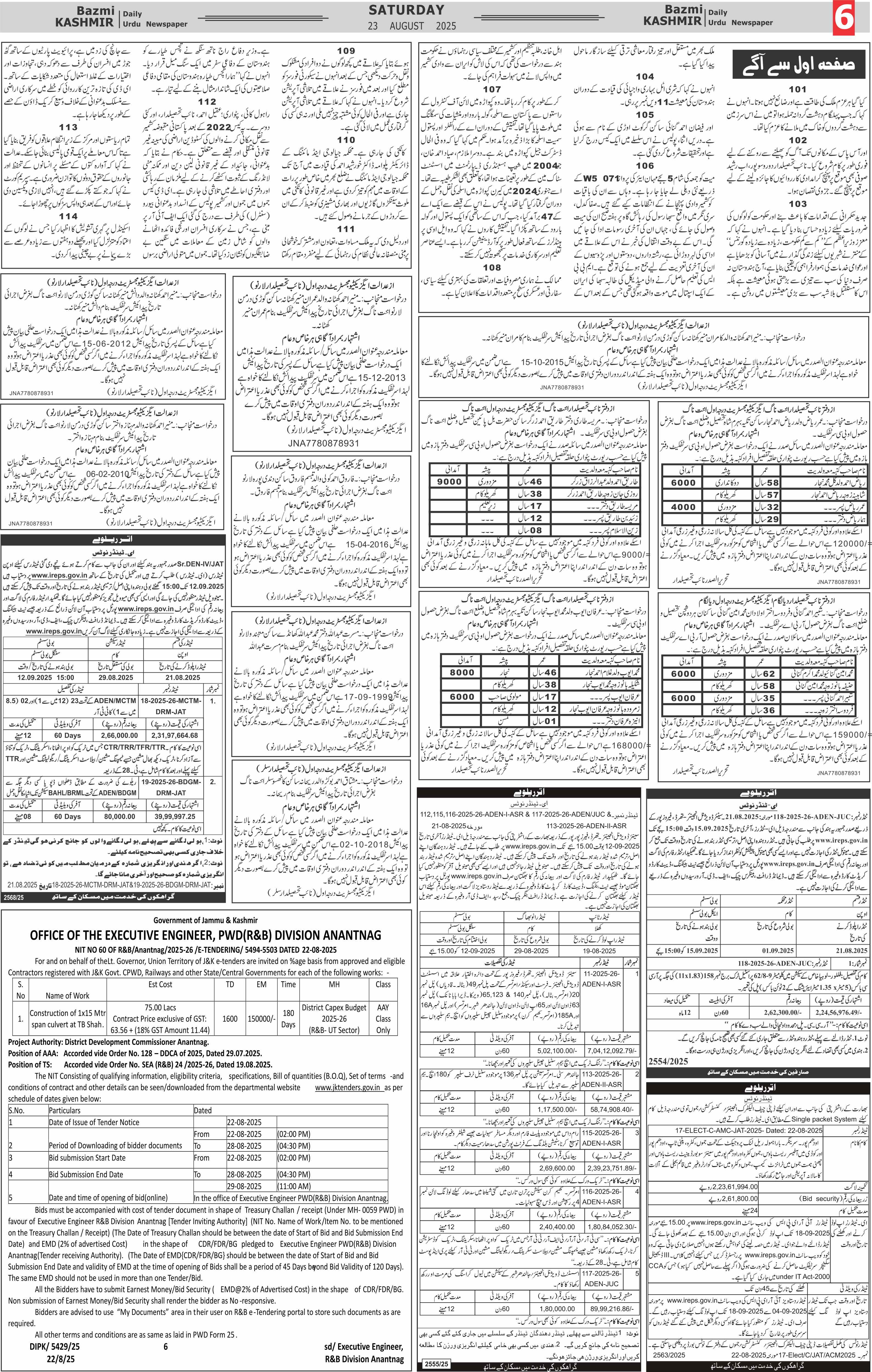 Bazam Kashmir Page: 6 August 23, 2025 << First << 6 >> Last >> Page 1Page 2Page 3Page 4Page 5Page 6Page 7Page 8 × Bazam Kashmir B -6 B -1B -2B -3B -4B -5B -6B -7B -8