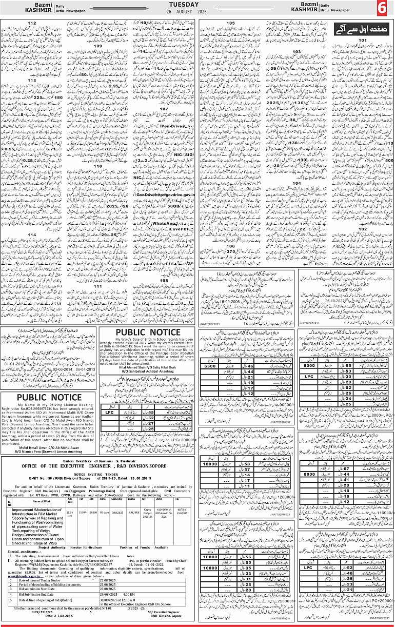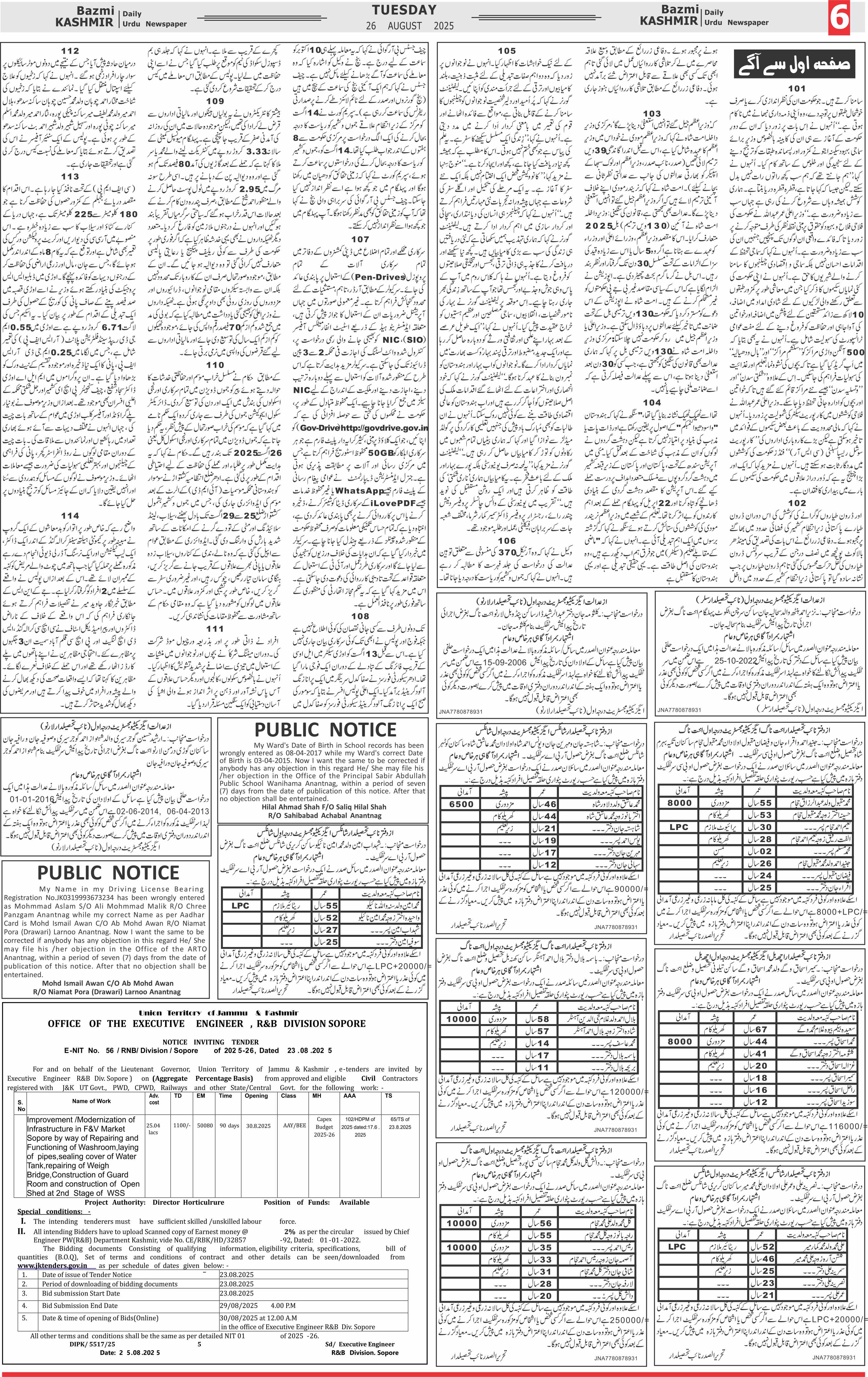 Bazam Kashmir Page: 6 August 26, 2025 << First << 6 >> Last >> Page 1Page 2Page 3Page 4Page 5Page 6Page 7Page 8 × Bazam Kashmir B -6 B -1B -2B -3B -4B -5B -6B -7B -8