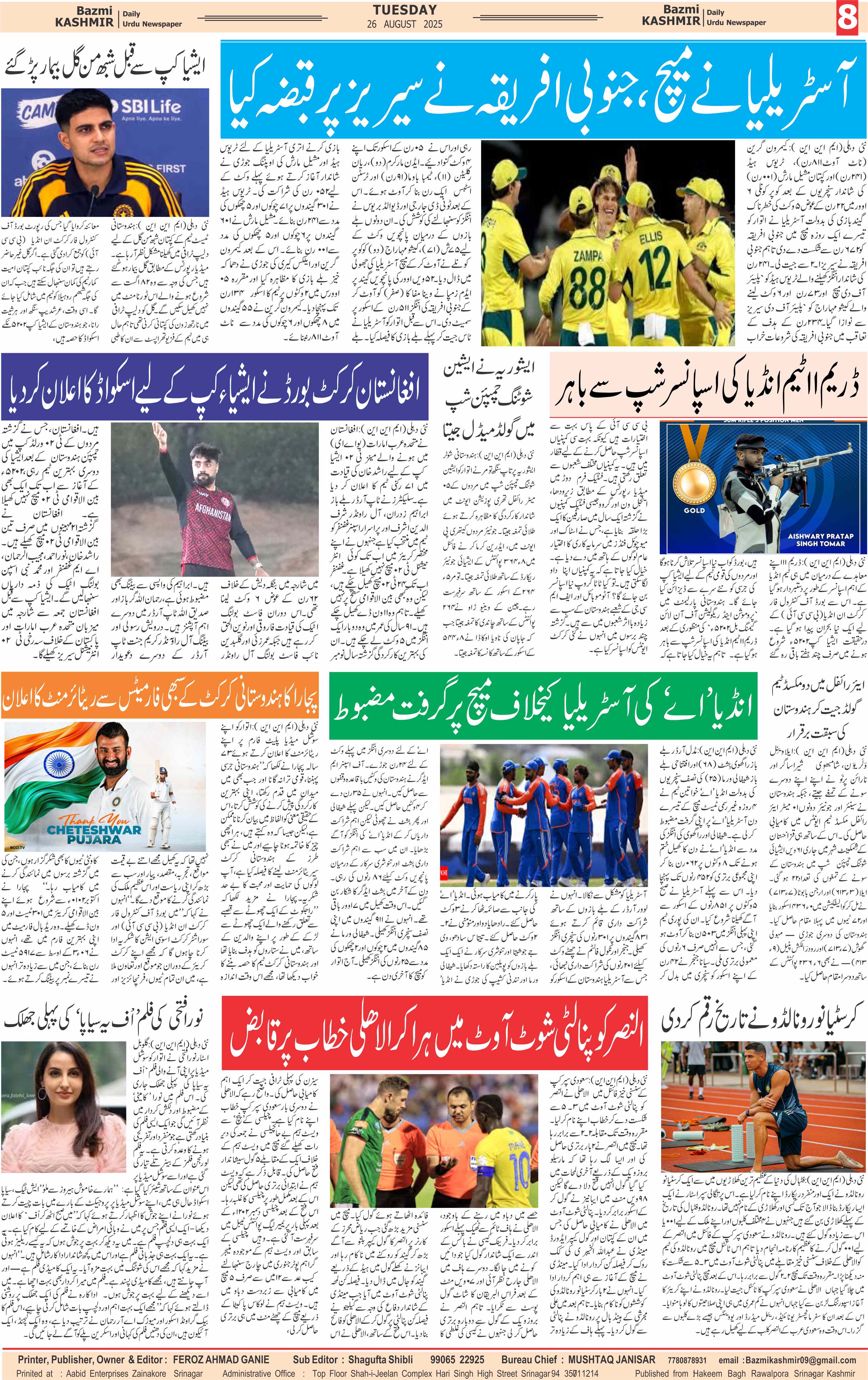 Bazam Kashmir Page: 8 August 26, 2025 << First << 8 >> Last >> Page 1Page 2Page 3Page 4Page 5Page 6Page 7Page 8 × Bazam Kashmir B -8 B -1B -2B -3B -4B -5B -6B -7B -8