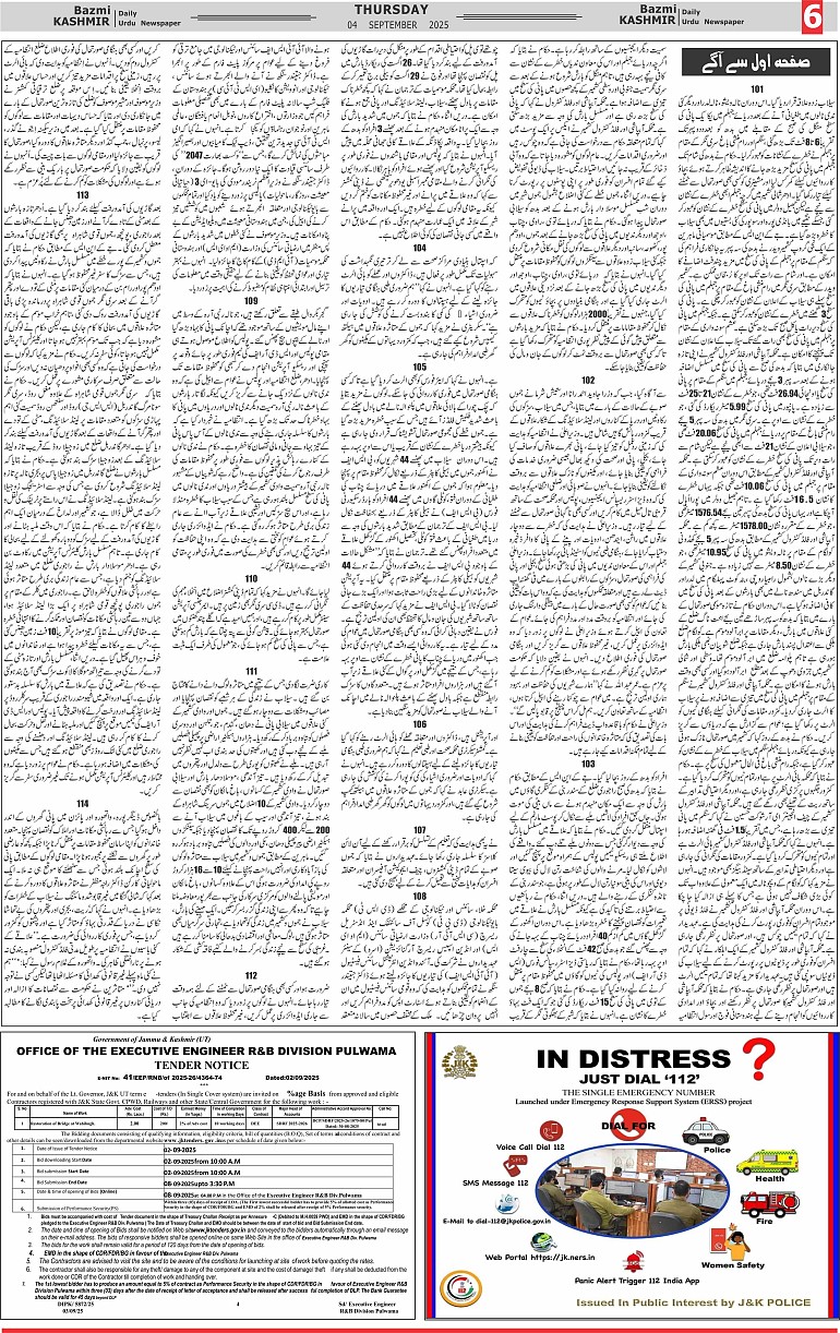 Bazam Kashmir Page: 6 September 04, 2025 << First << 6 >> Last >> Page 1Page 2Page 3Page 4Page 5Page 6Page 7Page 8 × Bazam Kashmir B -6 B -1B -2B -3B -4B -5B -6B -7B -8