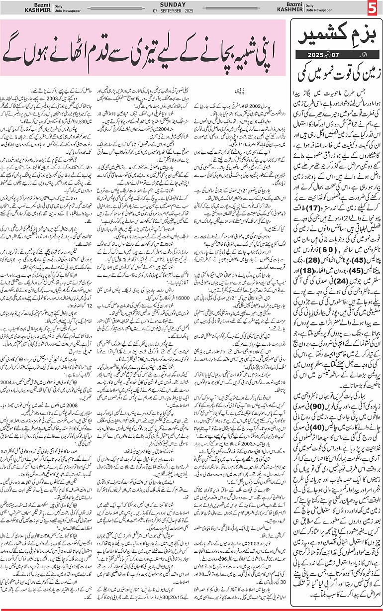 Bazam Kashmir Page: 5 September 07, 2025 << First << 5 >> Last >> Page 1Page 2Page 3Page 4Page 5Page 6Page 7Page 8 × Bazam Kashmir B -5 B -1B -2B -3B -4B -5B -6B -7B -8