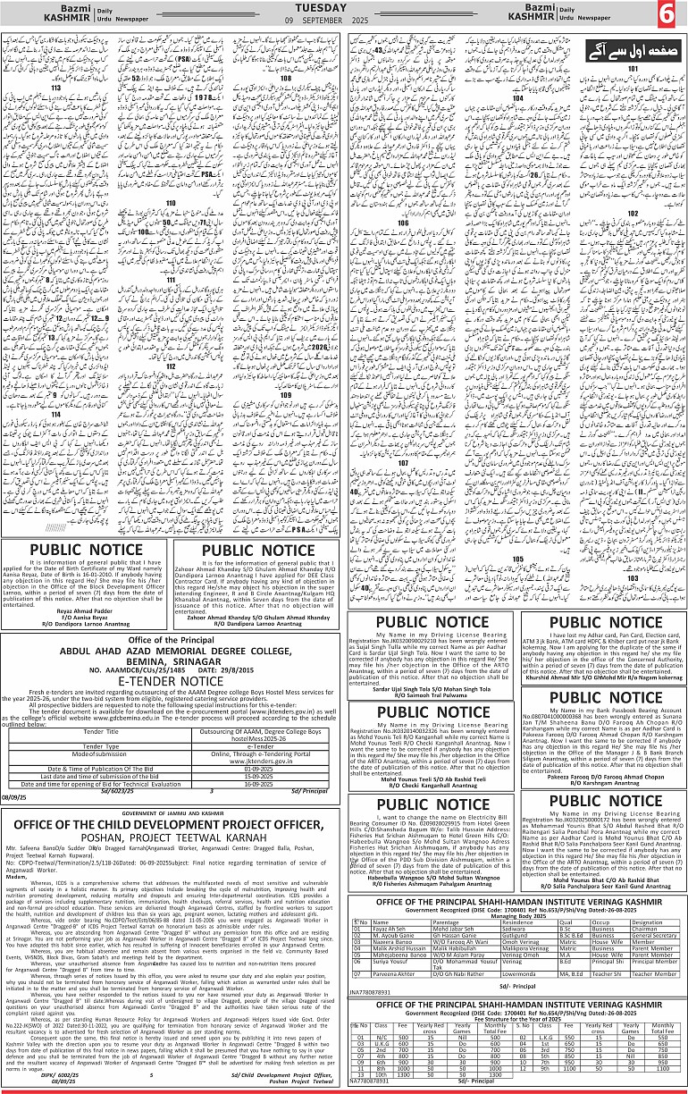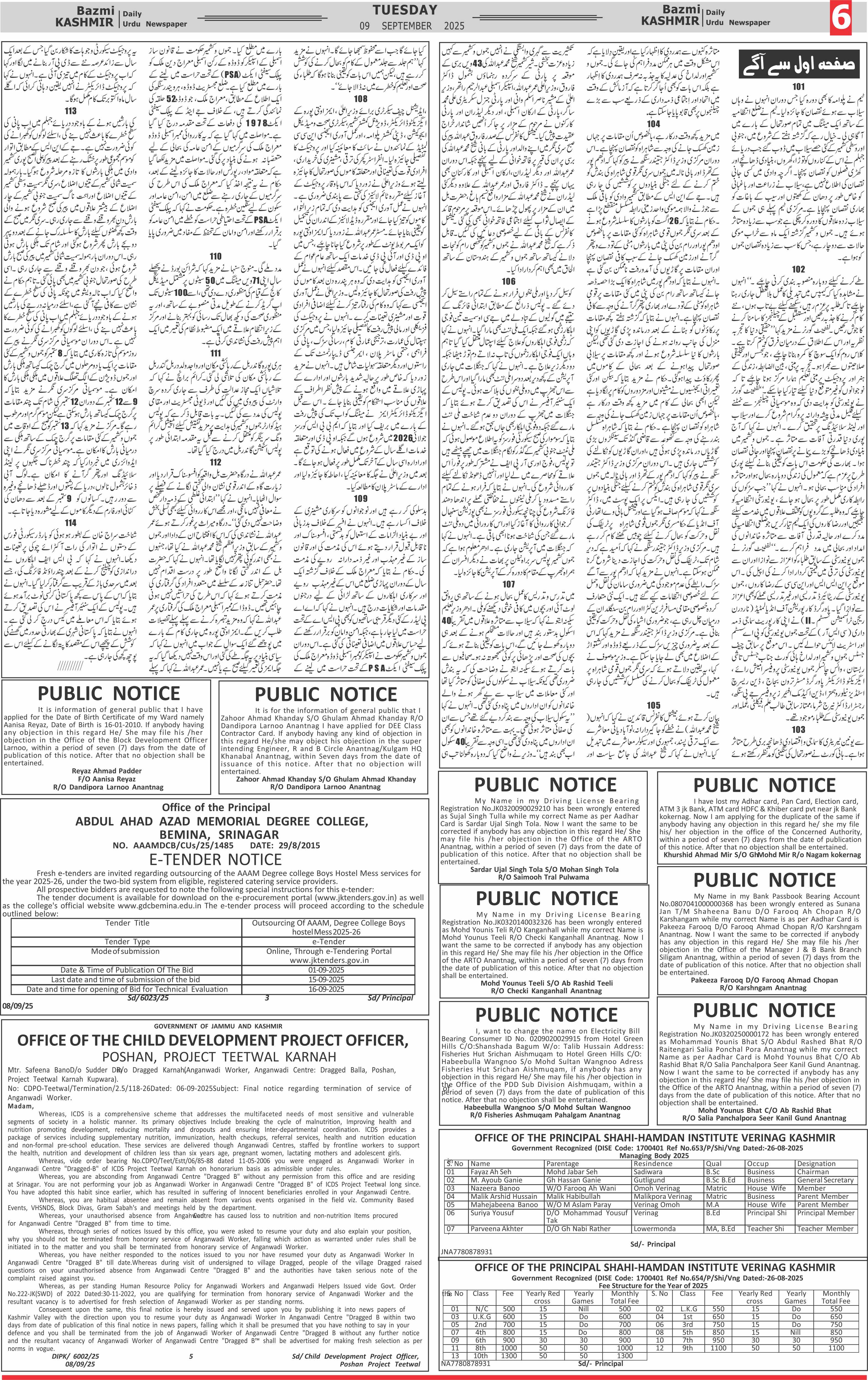 Bazam Kashmir Page: 6 September 09, 2025 << First << 6 >> Last >> Page 1Page 2Page 3Page 4Page 5Page 6Page 7Page 8 × Bazam Kashmir B -6 B -1B -2B -3B -4B -5B -6B -7B -8