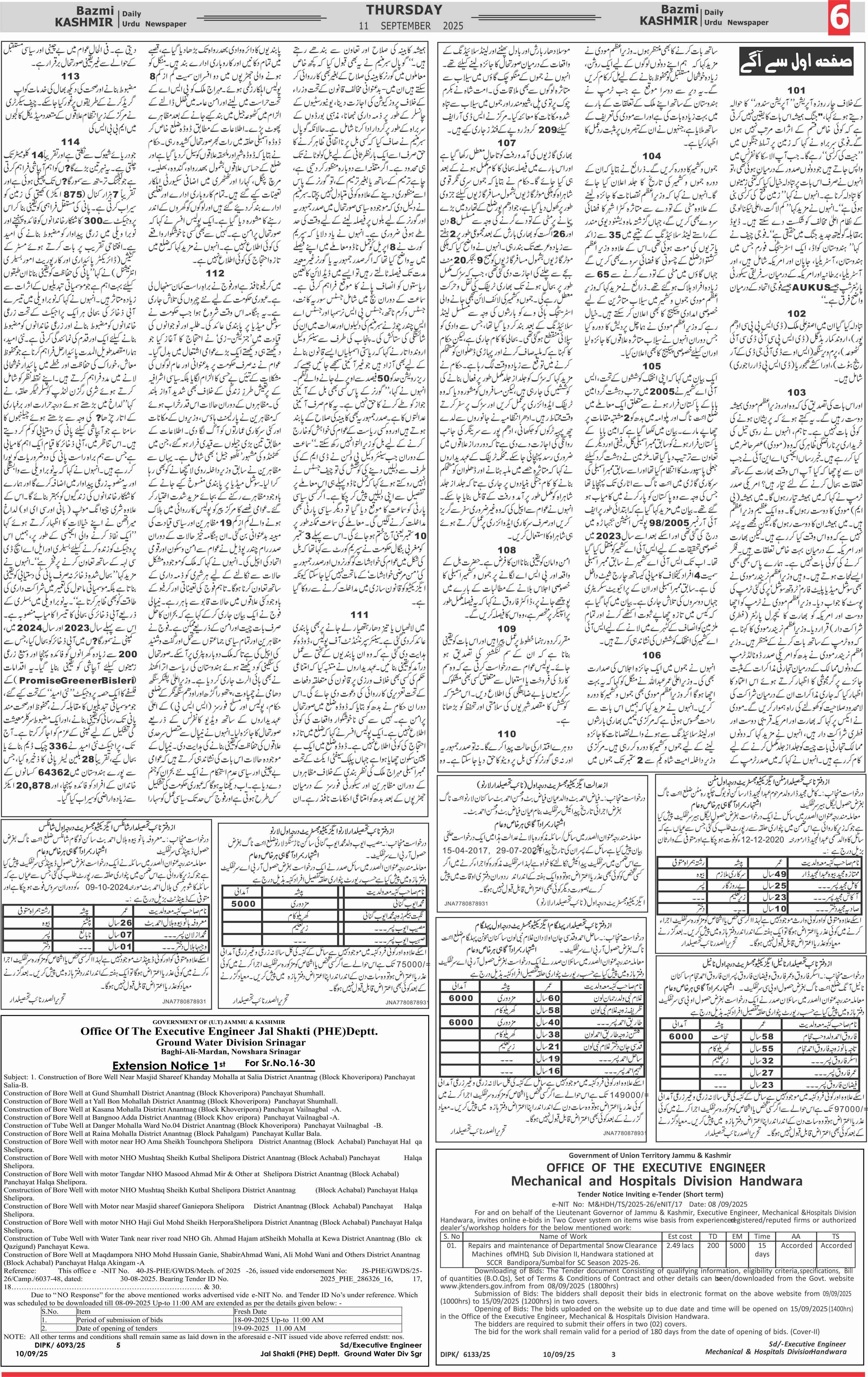 Bazam Kashmir Page: 6 September 11, 2025 << First << 6 >> Last >> Page 1Page 2Page 3Page 4Page 5Page 6Page 7Page 8 × Bazam Kashmir B -6 B -1B -2B -3B -4B -5B -6B -7B -8