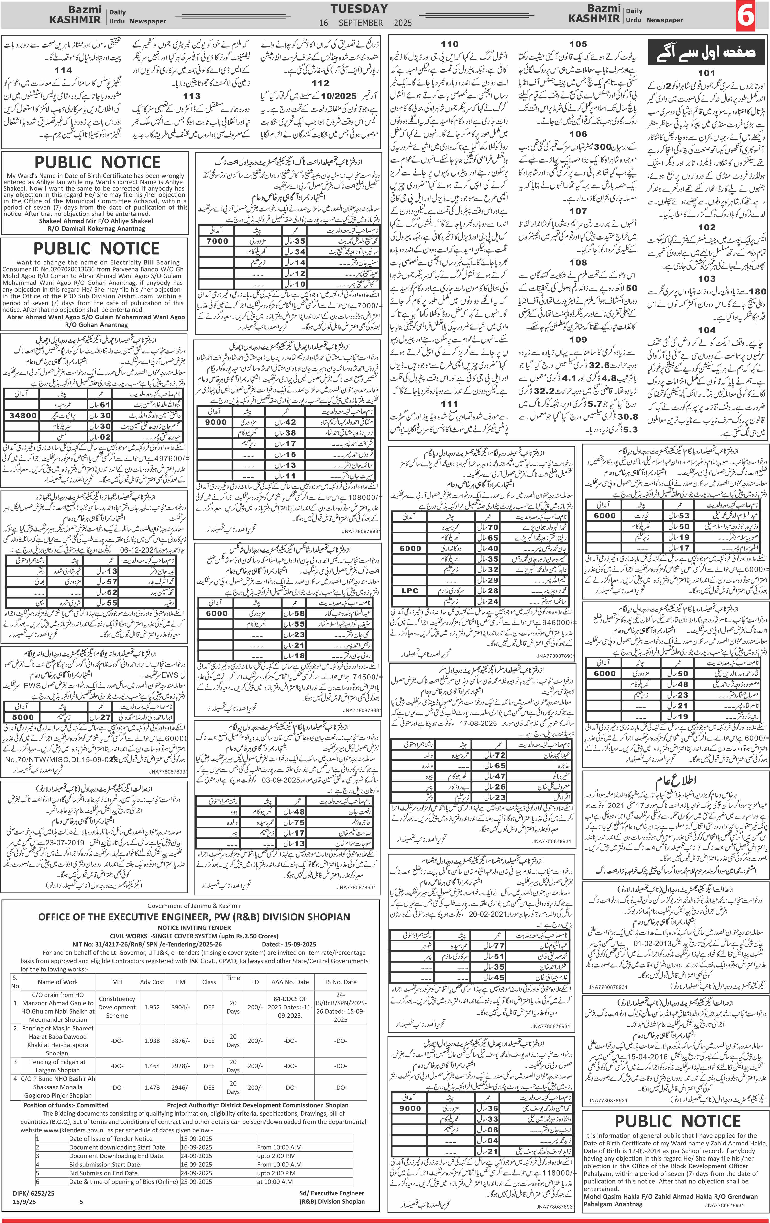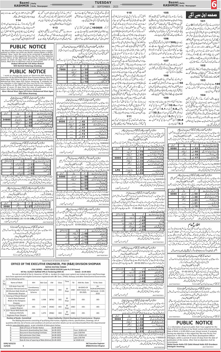 Bazam Kashmir Page: 6 September 16, 2025 << First << 6 >> Last >> Page 1Page 2Page 3Page 4Page 5Page 6Page 7Page 8 × Bazam Kashmir B -6 B -1B -2B -3B -4B -5B -6B -7B -8