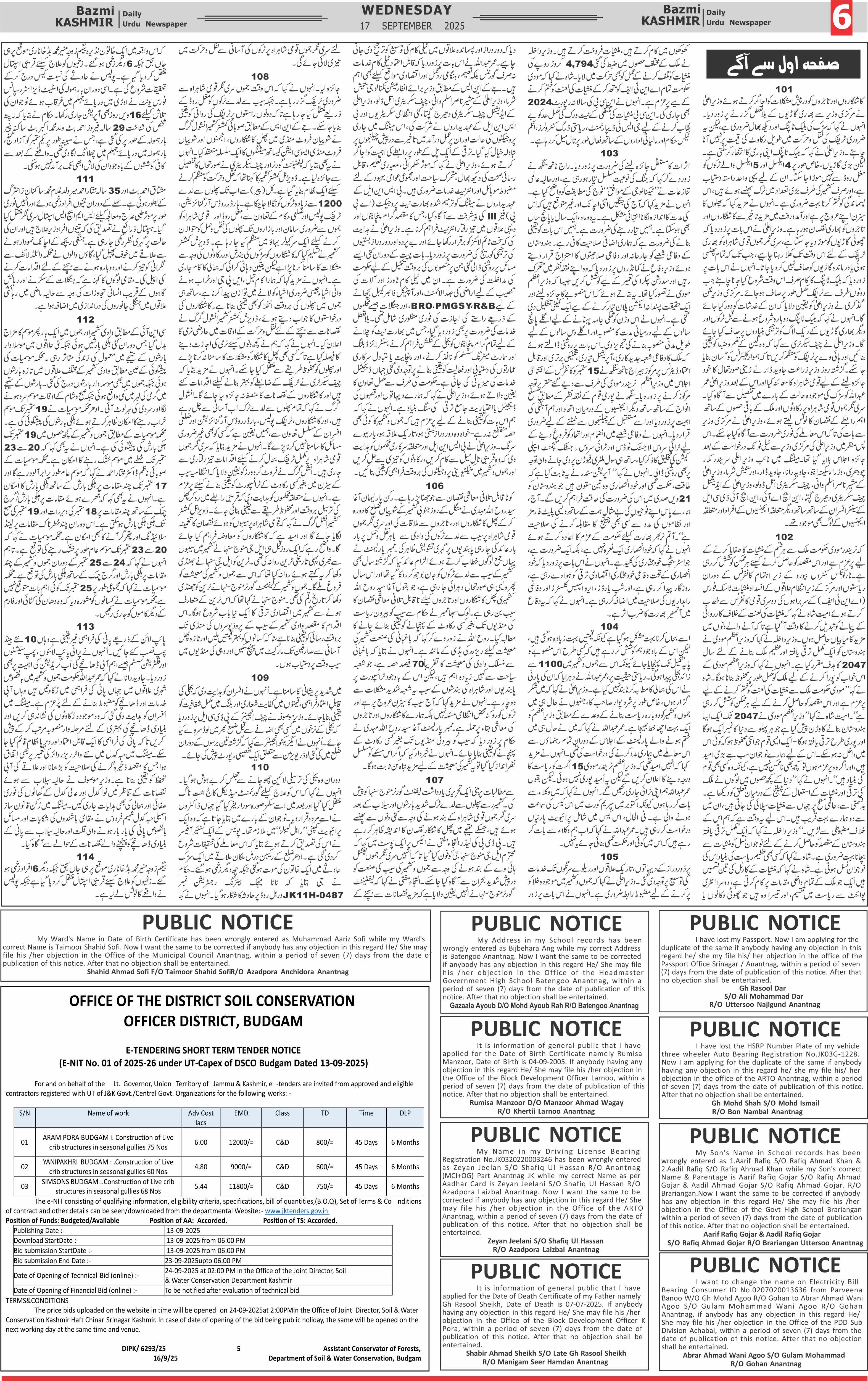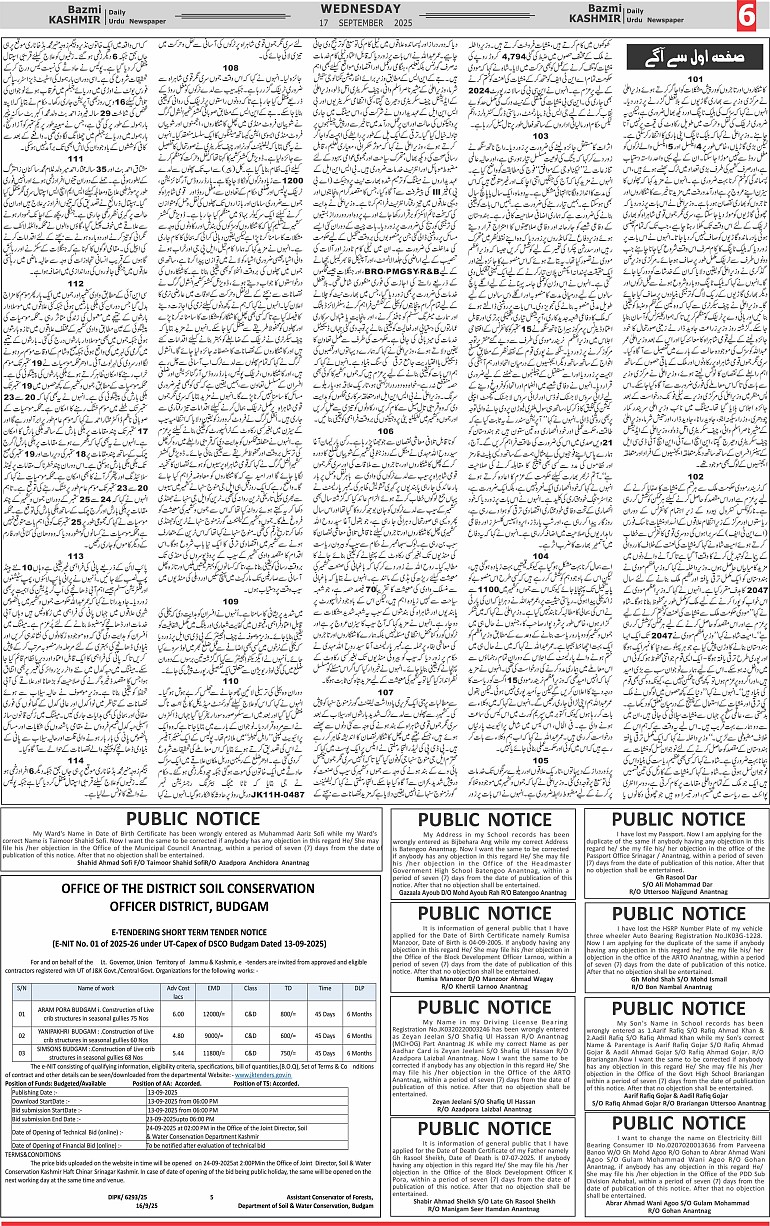Bazam Kashmir Page: 6 September 17, 2025 << First << 6 >> Last >> Page 1Page 2Page 3Page 4Page 5Page 6Page 7Page 8 × Bazam Kashmir B -6 B -1B -2B -3B -4B -5B -6B -7B -8