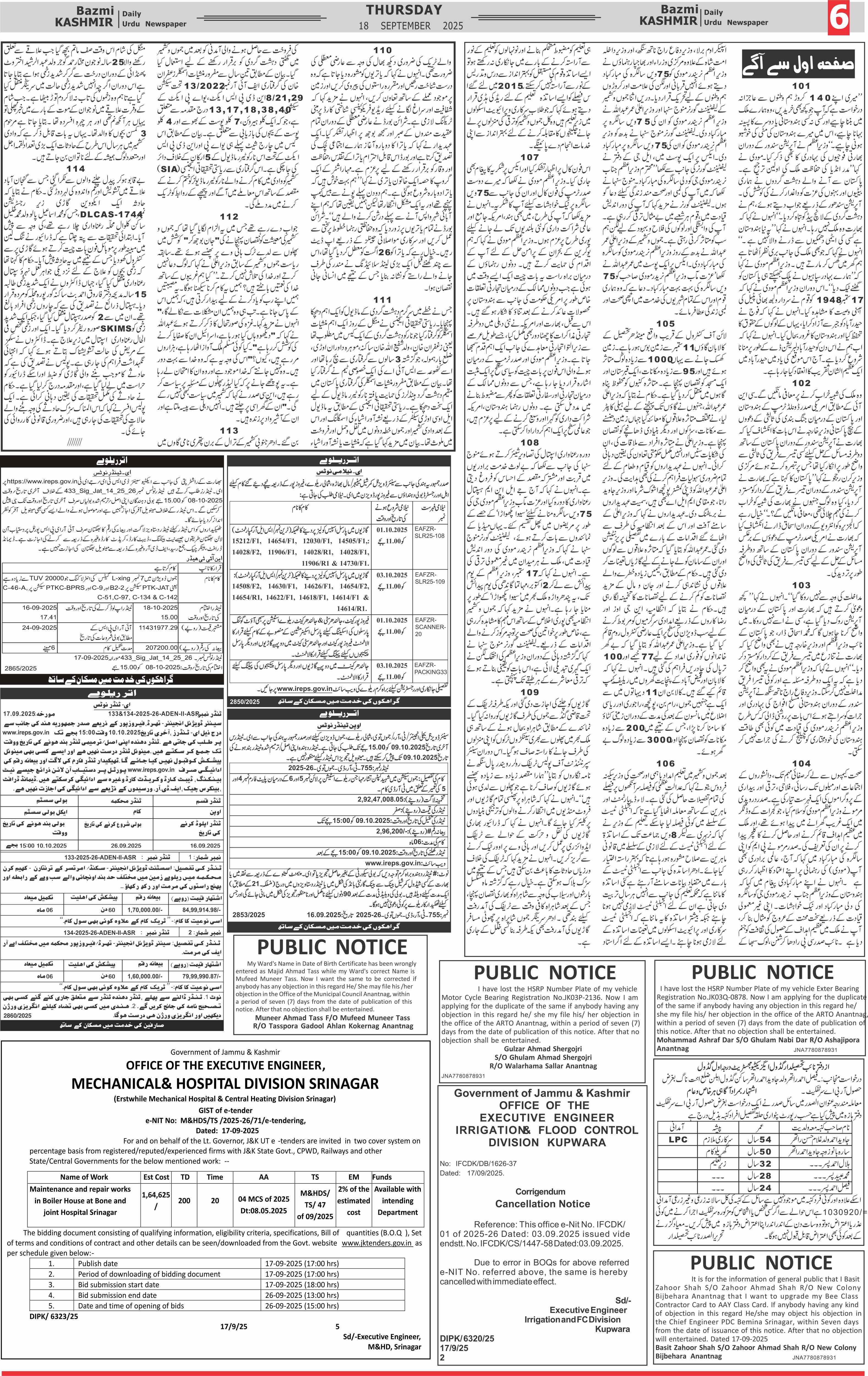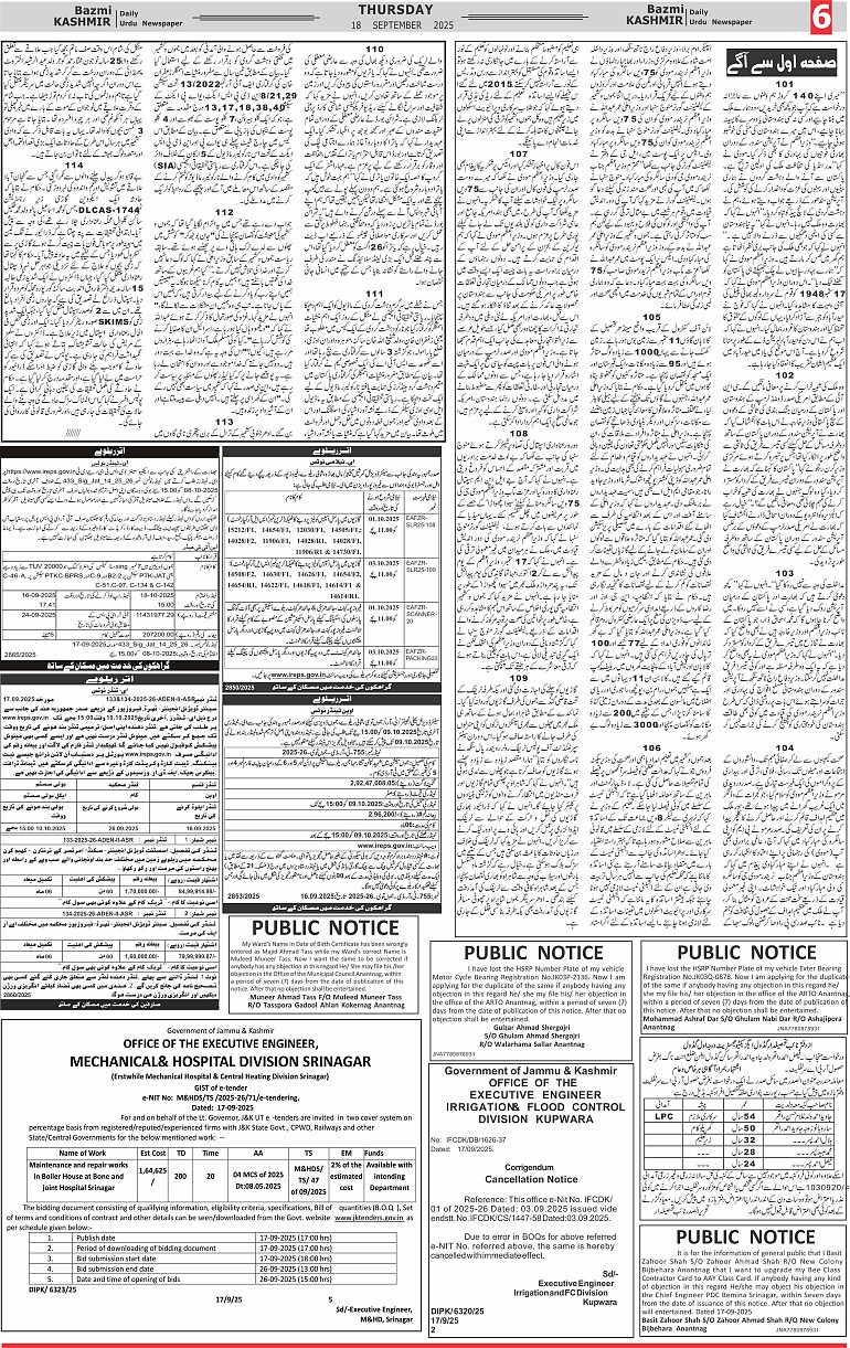 Bazam Kashmir Page: 6 September 18, 2025 << First << 6 >> Last >> Page 1Page 2Page 3Page 4Page 5Page 6Page 7Page 8 × Bazam Kashmir B -6 B -1B -2B -3B -4B -5B -6B -7B -8