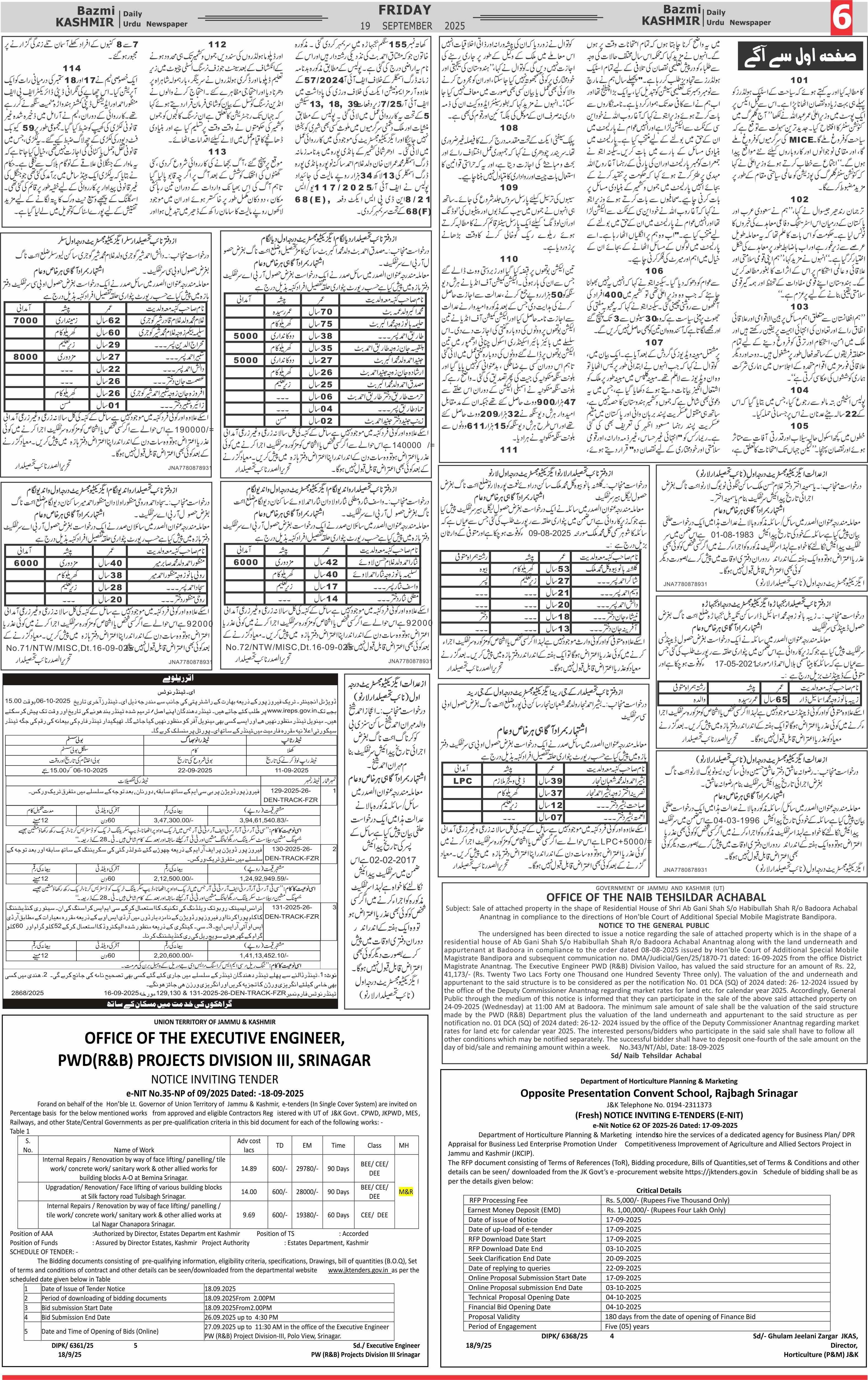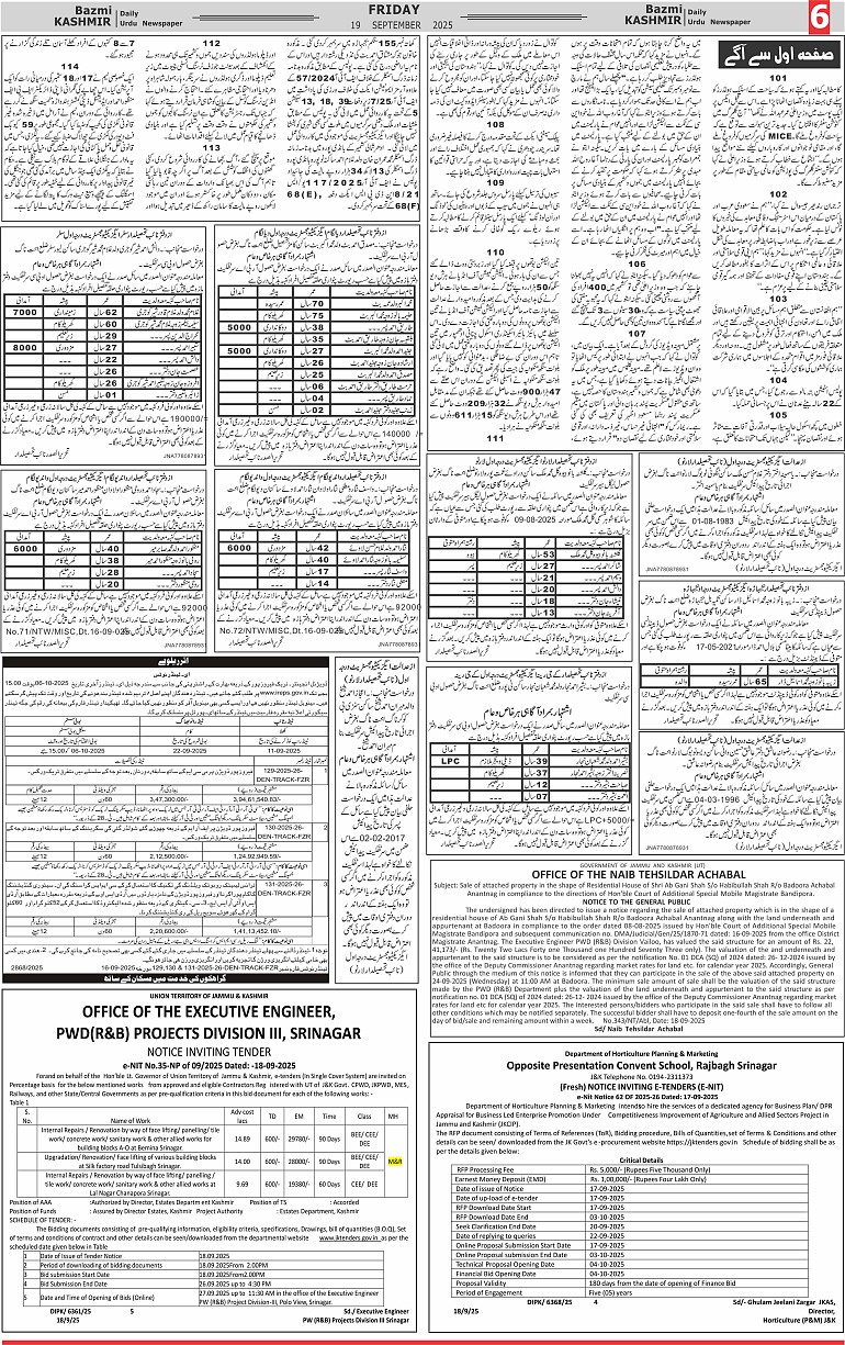 Bazam Kashmir Page: 6 September 19, 2025 << First << 6 >> Last >> Page 1Page 2Page 3Page 4Page 5Page 6Page 7Page 8 × Bazam Kashmir B -6 B -1B -2B -3B -4B -5B -6B -7B -8