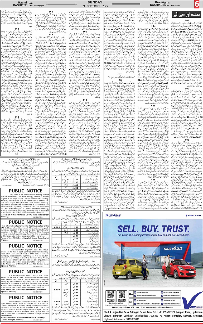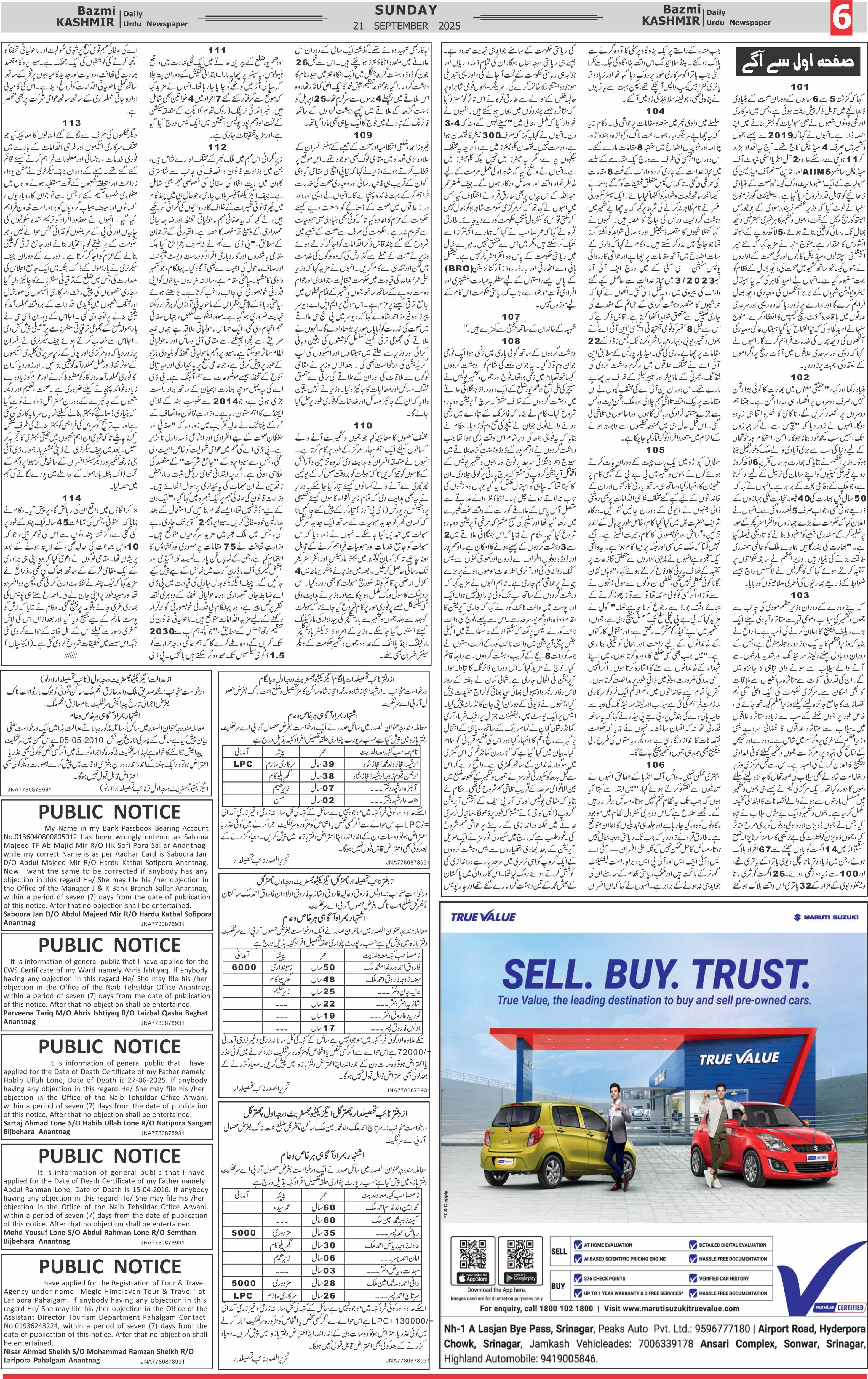 Bazam Kashmir Page: 6 September 21, 2025 << First << 6 >> Last >> Page 1Page 2Page 3Page 4Page 5Page 6Page 7Page 8 × Bazam Kashmir B -6 B -1B -2B -3B -4B -5B -6B -7B -8
