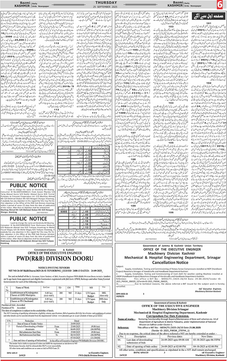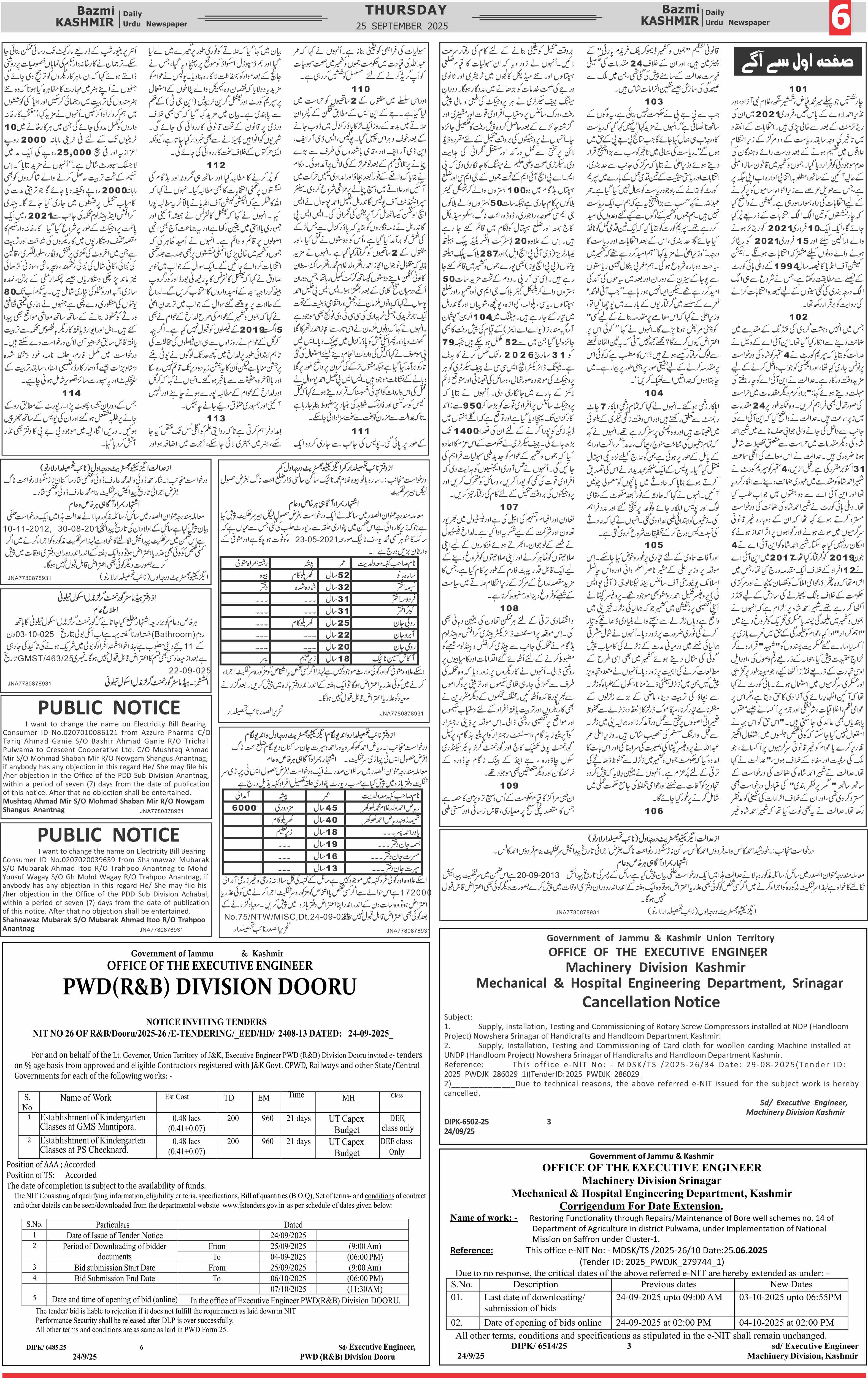 Bazam Kashmir Page: 6 September 25, 2025 << First << 6 >> Last >> Page 1Page 2Page 3Page 4Page 5Page 6Page 7Page 8 × Bazam Kashmir B -6 B -1B -2B -3B -4B -5B -6B -7B -8