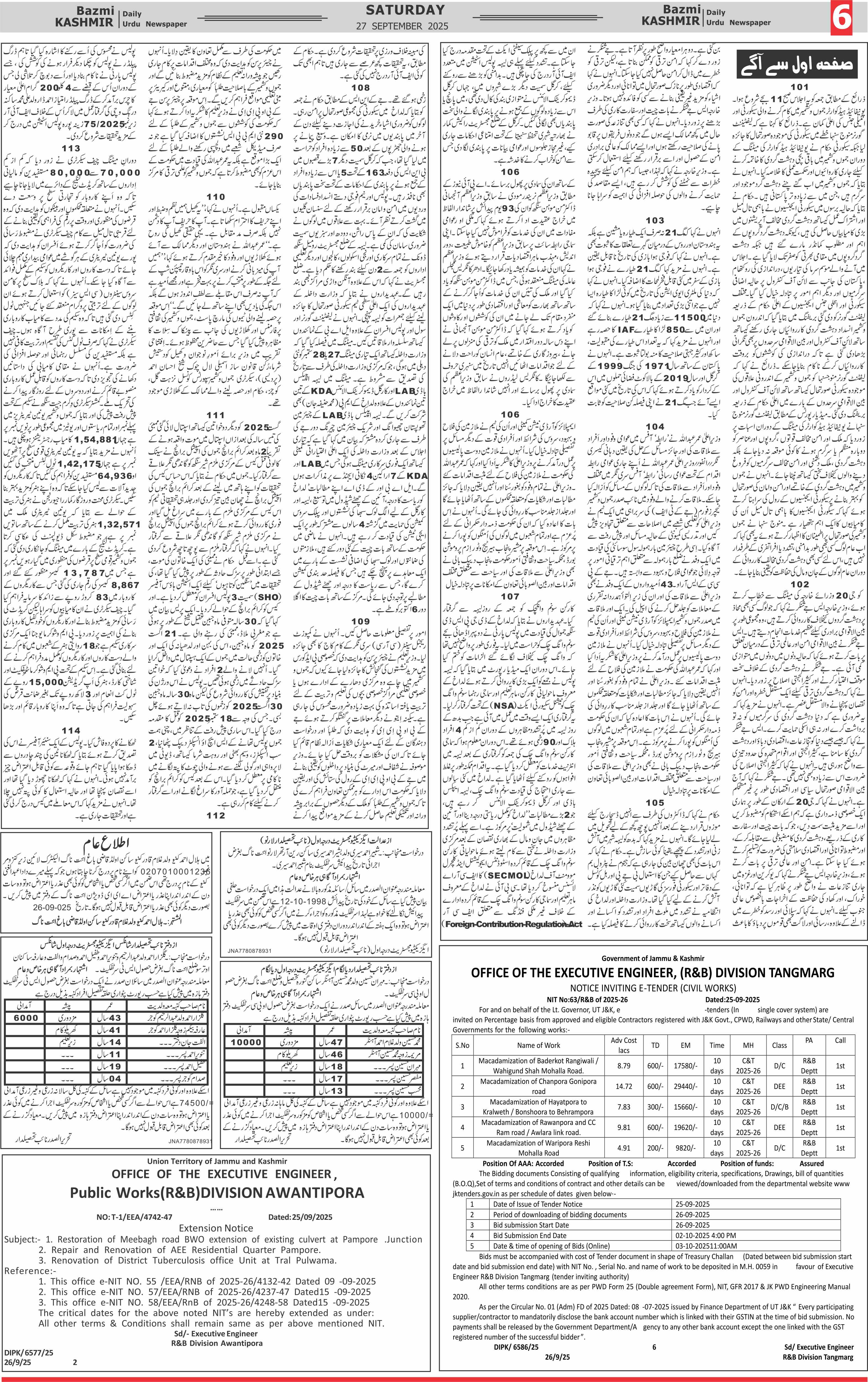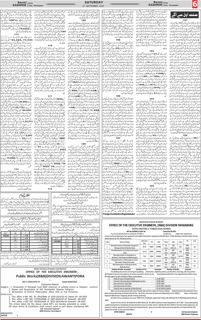 Bazam Kashmir Page: 6 September 27, 2025 << First << 6 >> Last >> Page 1Page 2Page 3Page 4Page 5Page 6Page 7Page 8 × Bazam Kashmir B -6 B -1B -2B -3B -4B -5B -6B -7B -8