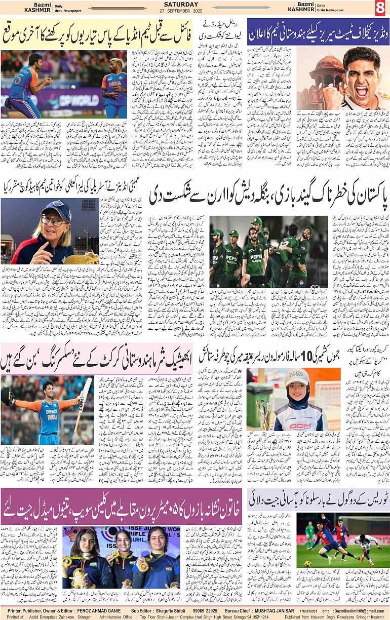 Bazam Kashmir Page: 8 September 27, 2025 << First << 8 >> Last >> Page 1Page 2Page 3Page 4Page 5Page 6Page 7Page 8 × Bazam Kashmir B -8 B -1B -2B -3B -4B -5B -6B -7B -8