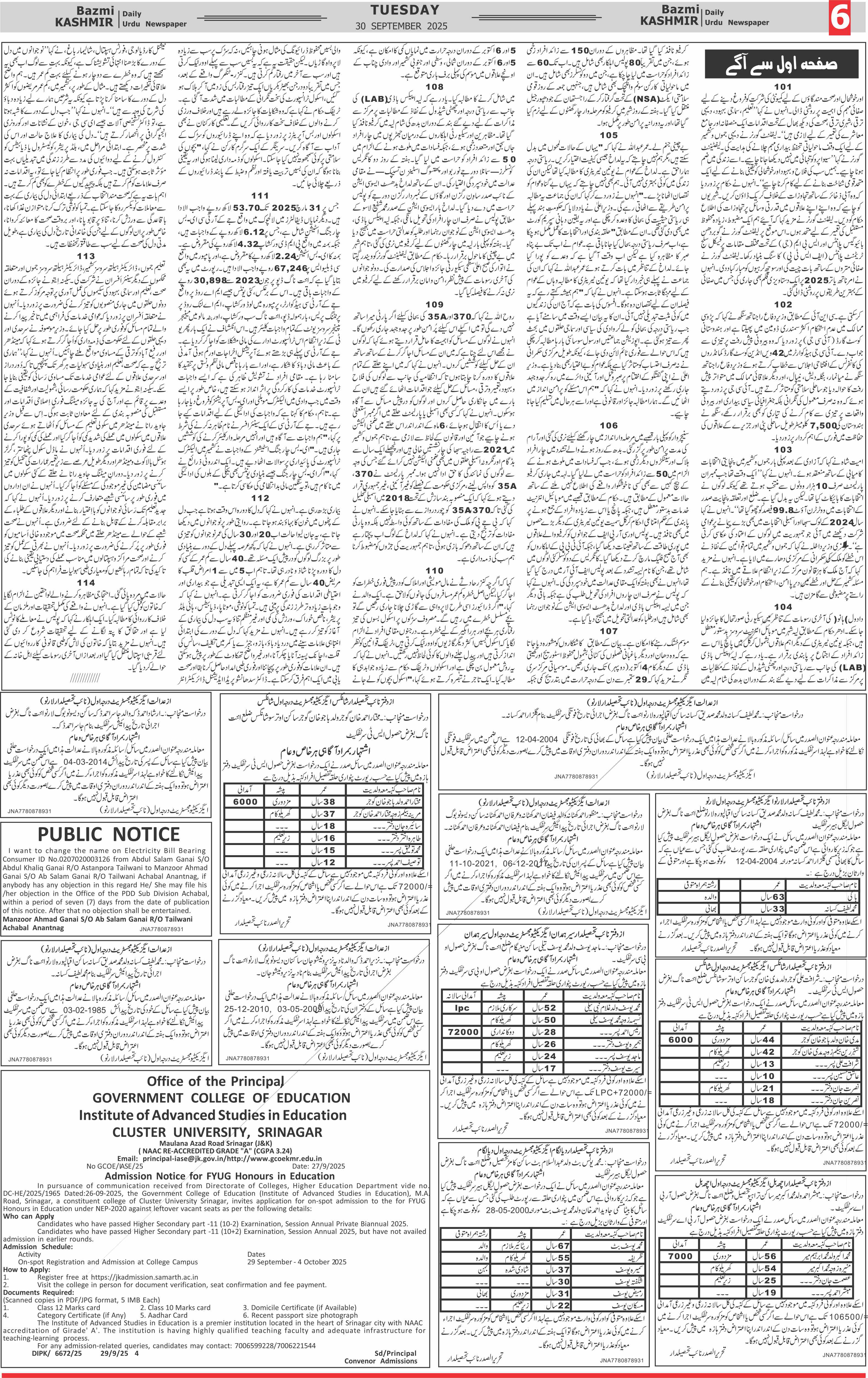 Bazam Kashmir Page: 6 September 30, 2025 << First << 6 >> Last >> Page 1Page 2Page 3Page 4Page 5Page 6Page 7Page 8 × Bazam Kashmir B -6 B -1B -2B -3B -4B -5B -6B -7B -8