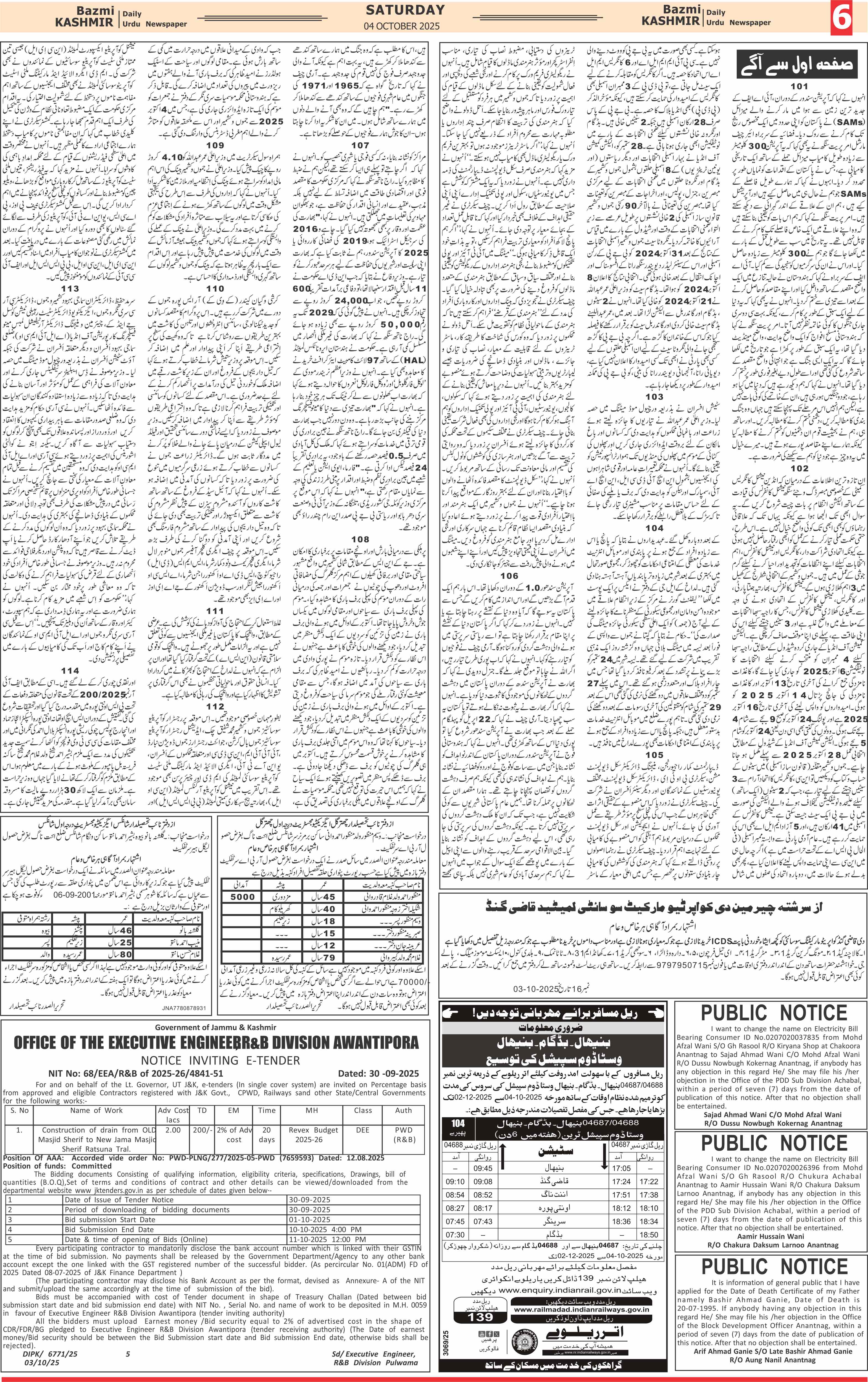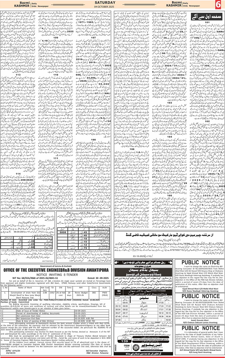 Bazam Kashmir Page: 6 October 04, 2025 << First << 6 >> Last >> Page 1Page 2Page 3Page 4Page 5Page 6Page 7Page 8 × Bazam Kashmir B -6 B -1B -2B -3B -4B -5B -6B -7B -8