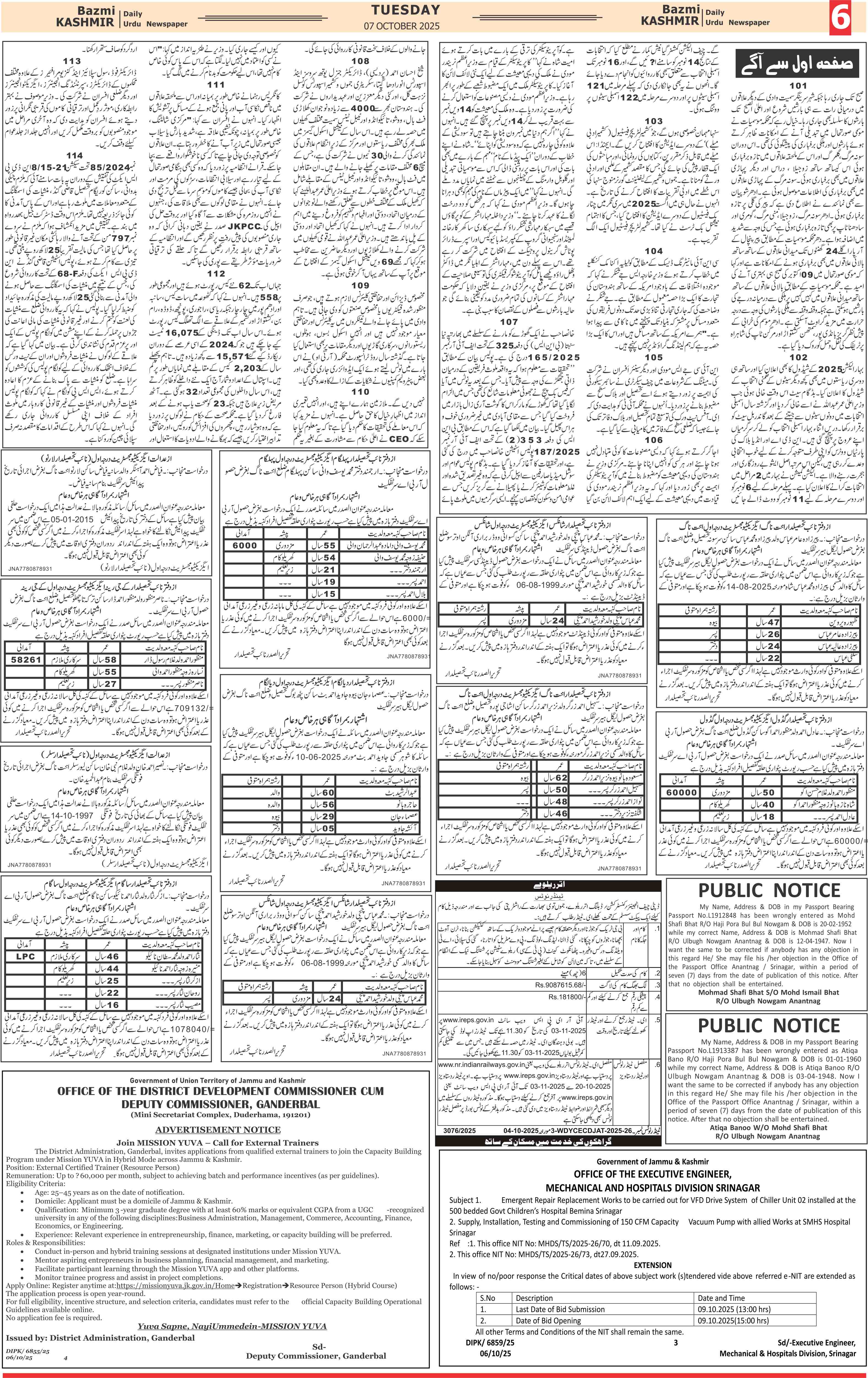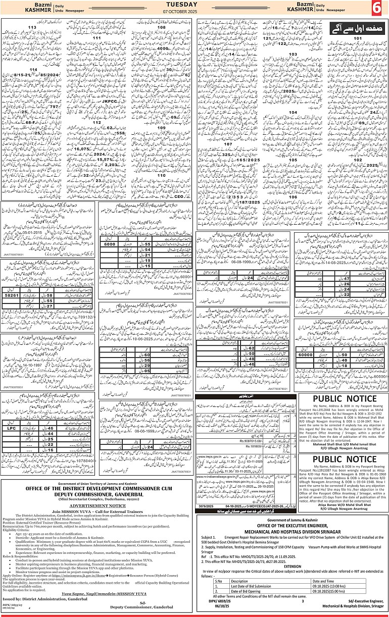 Bazam Kashmir Page: 6 October 07, 2025 << First << 6 >> Last >> Page 1Page 2Page 3Page 4Page 5Page 6Page 7Page 8 × Bazam Kashmir B -6 B -1B -2B -3B -4B -5B -6B -7B -8