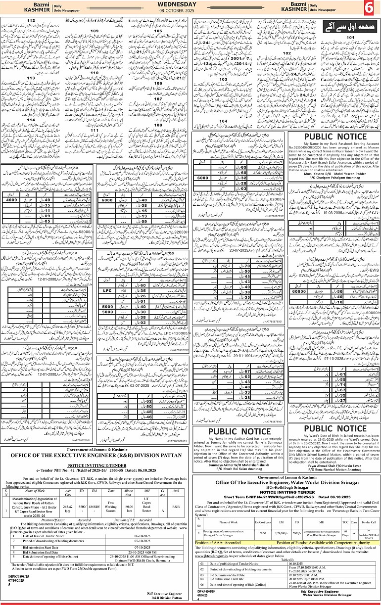 Bazam Kashmir Page: 6 October 08, 2025 << First << 6 >> Last >> Page 1Page 2Page 3Page 4Page 5Page 6Page 7Page 8 × Bazam Kashmir B -6 B -1B -2B -3B -4B -5B -6B -7B -8