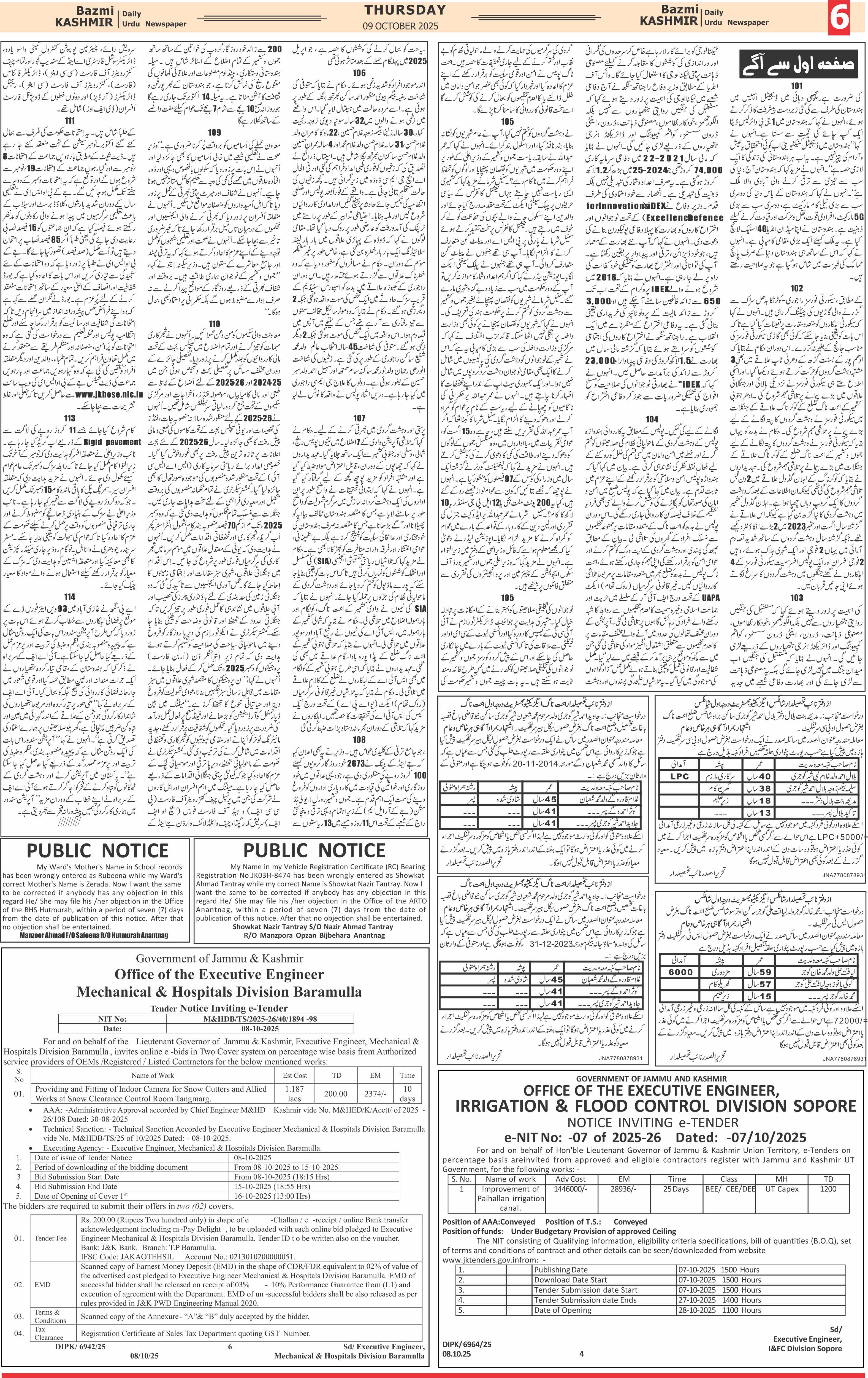 Bazam Kashmir Page: 6 October 09, 2025 << First << 6 >> Last >> Page 1Page 2Page 3Page 4Page 5Page 6Page 7Page 8 × Bazam Kashmir B -6 B -1B -2B -3B -4B -5B -6B -7B -8