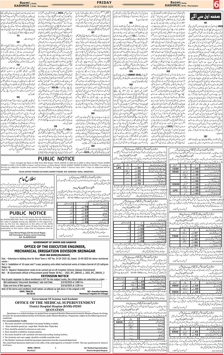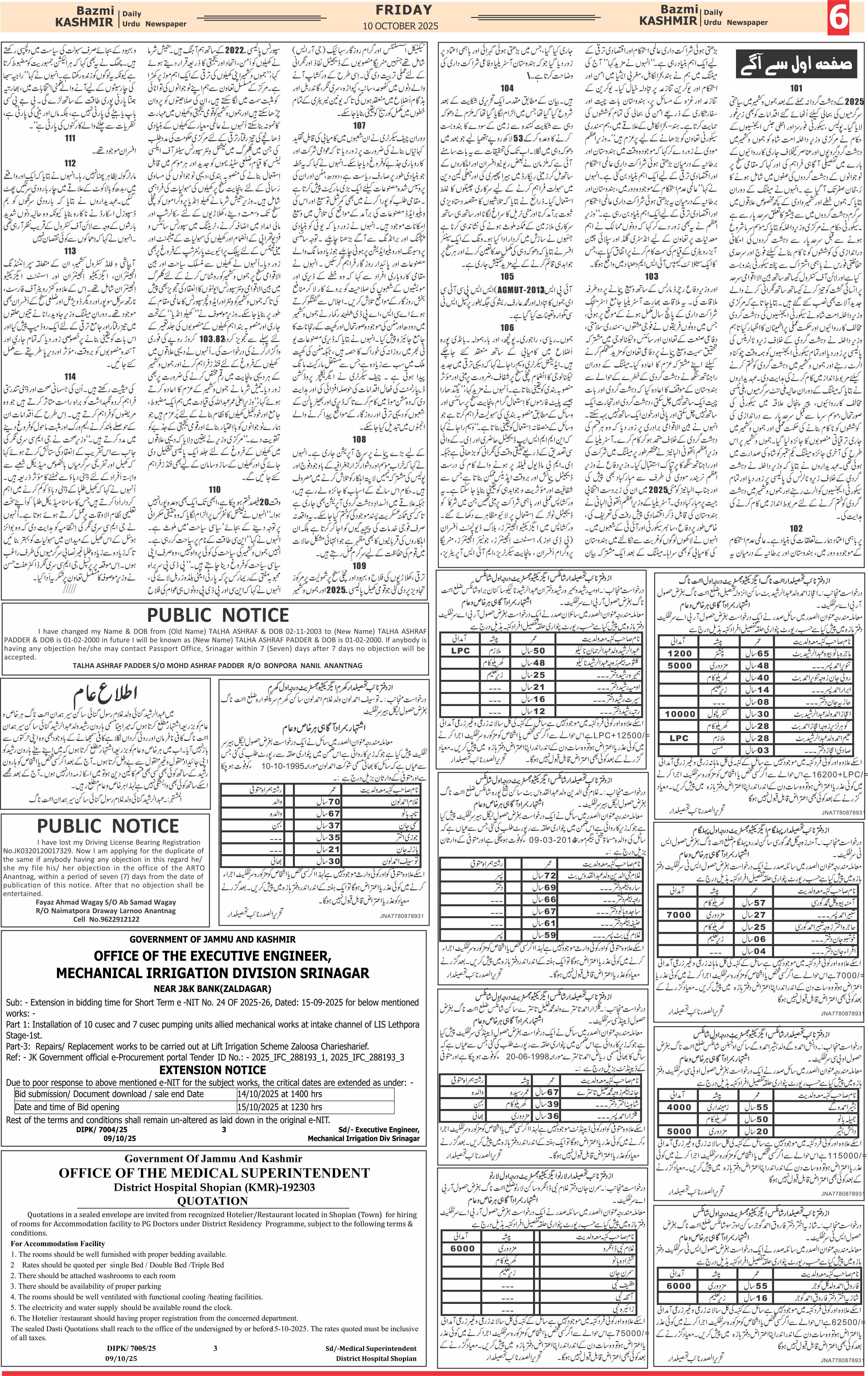 Bazam Kashmir Page: 6 October 10, 2025 << First << 6 >> Last >> Page 1Page 2Page 3Page 4Page 5Page 6Page 7Page 8 × Bazam Kashmir B -6 B -1B -2B -3B -4B -5B -6B -7B -8