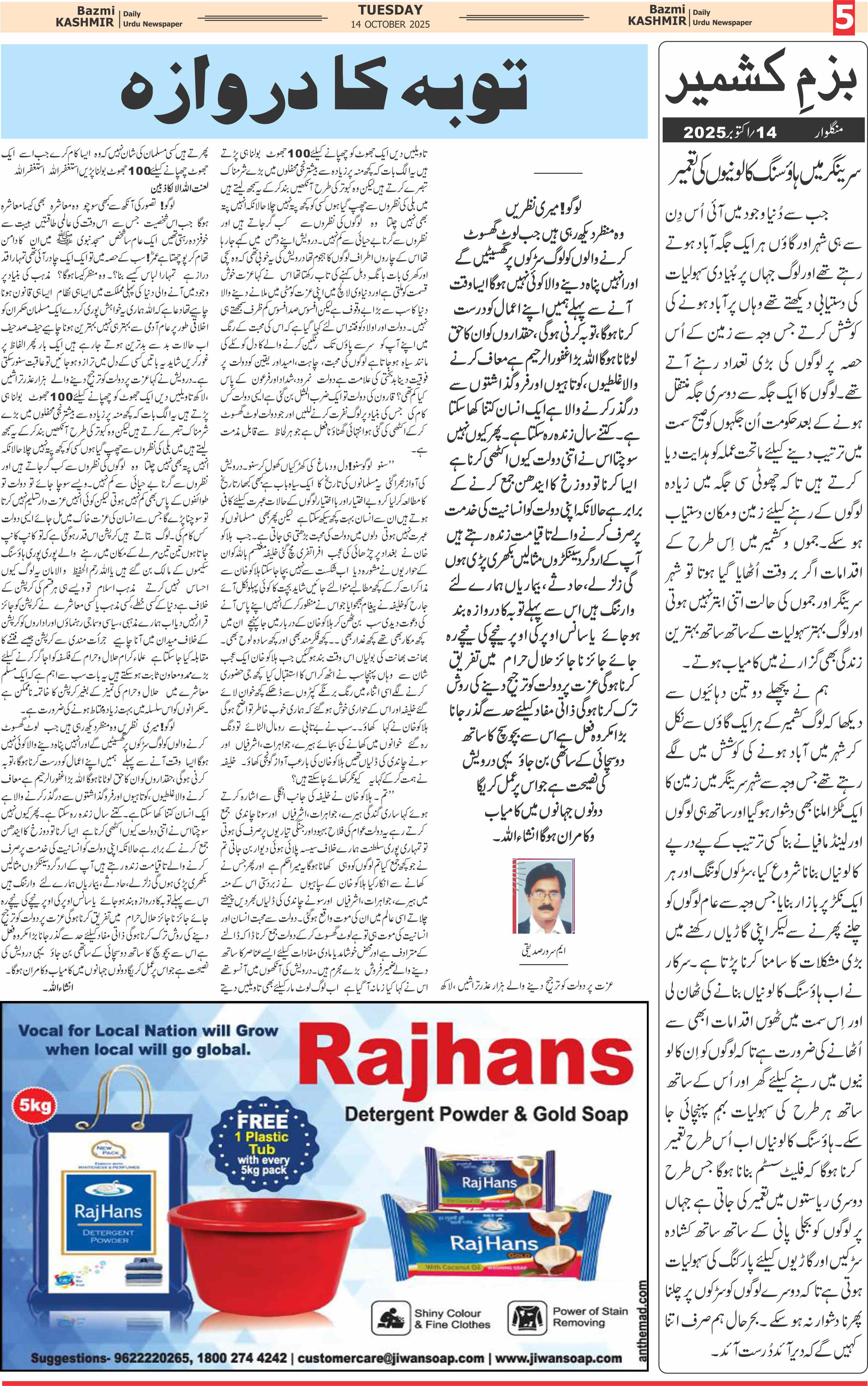Bazam Kashmir Page: 5 October 14, 2025 << First << 5 >> Last >> Page 1Page 2Page 3Page 4Page 5Page 6Page 7Page 8 × Bazam Kashmir B -5 B -1B -2B -3B -4B -5B -6B -7B -8