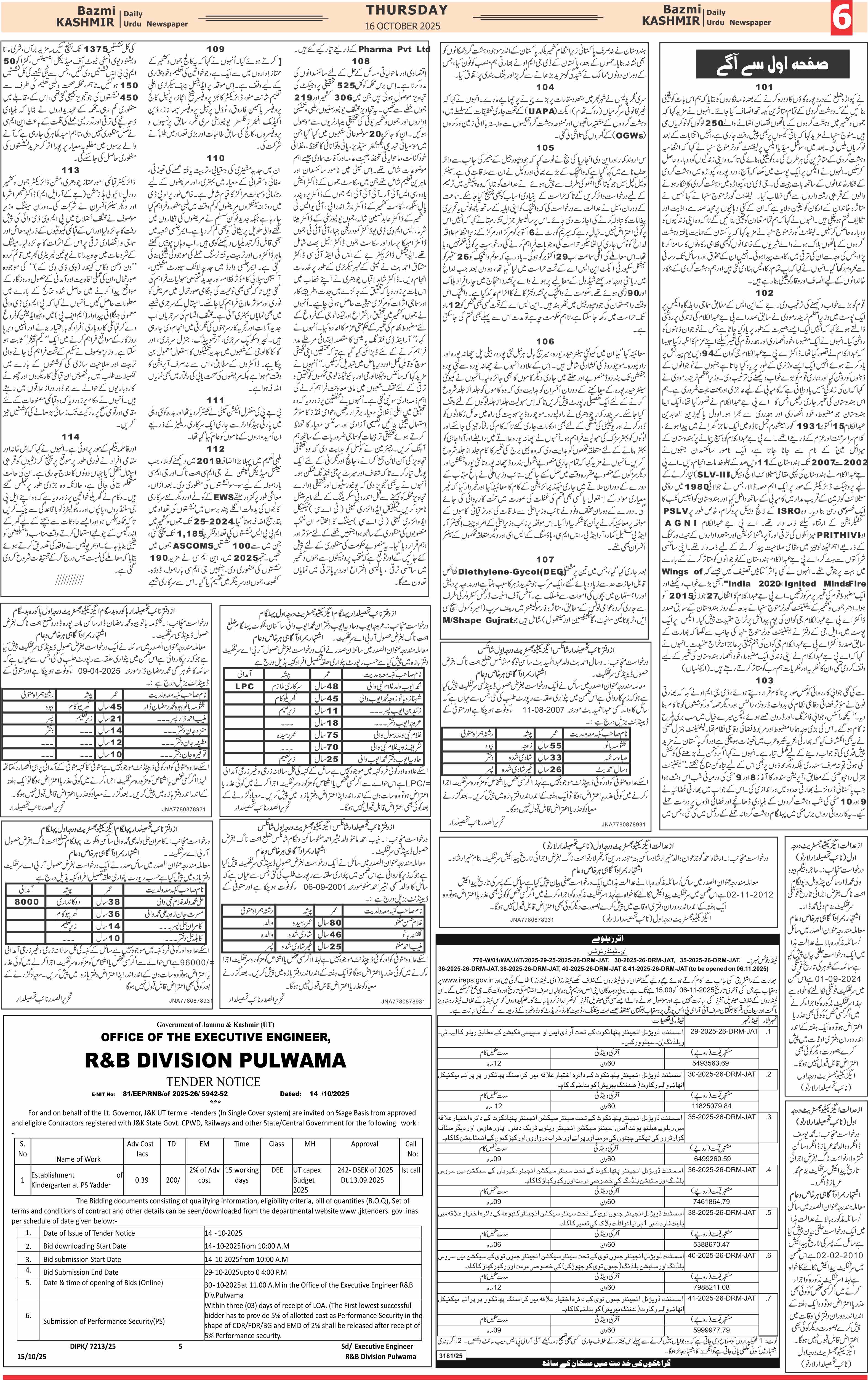 Bazam Kashmir Page: 6 October 16, 2025 << First << 6 >> Last >> Page 1Page 2Page 3Page 4Page 5Page 6Page 7Page 8 × Bazam Kashmir B -6 B -1B -2B -3B -4B -5B -6B -7B -8