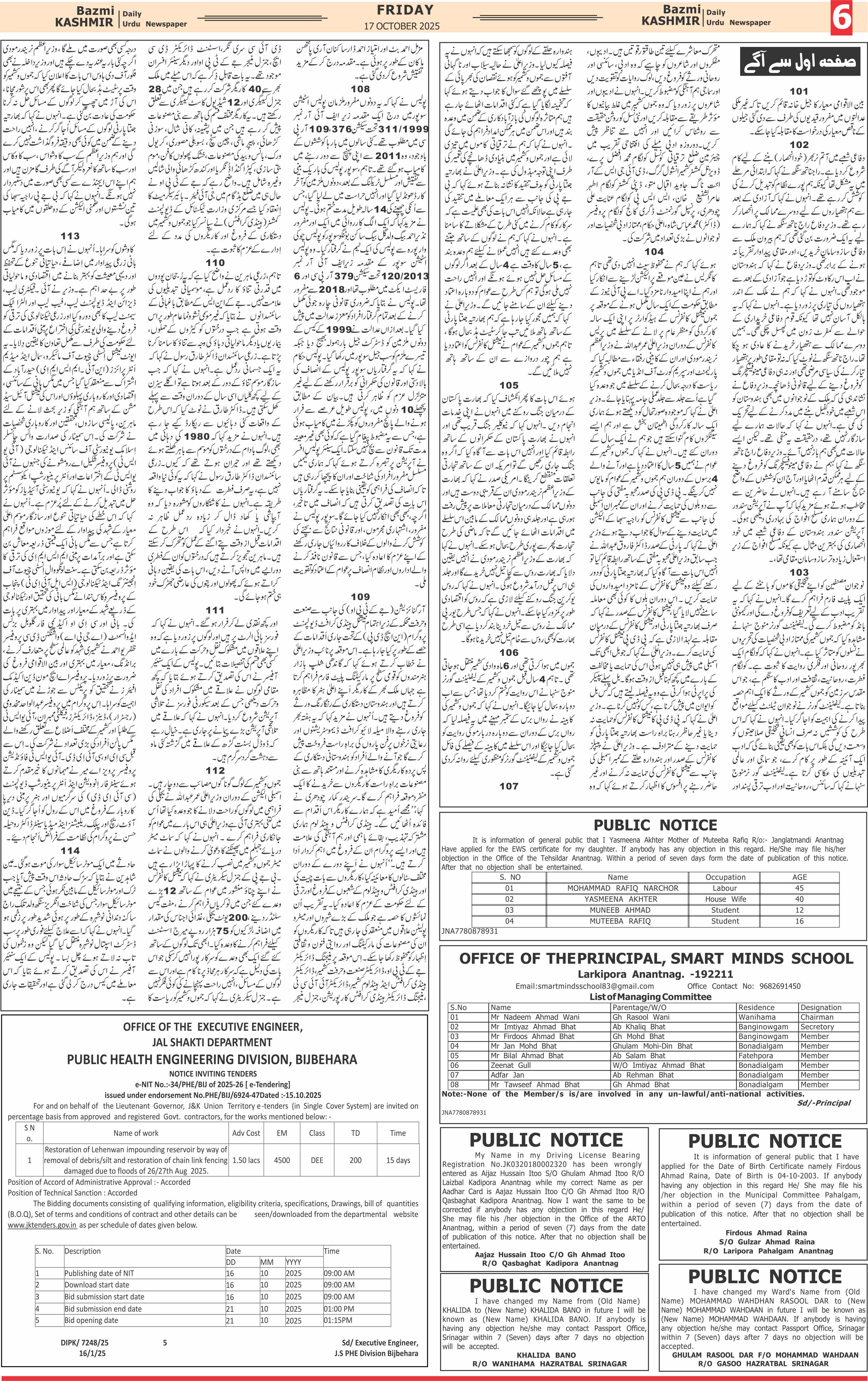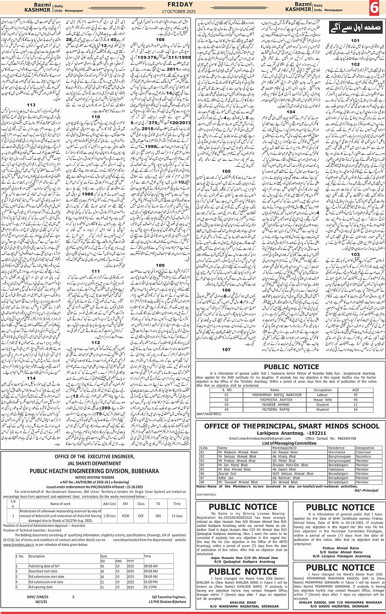 Bazam Kashmir Page: 6 October 17, 2025 << First << 6 >> Last >> Page 1Page 2Page 3Page 4Page 5Page 6Page 7Page 8 × Bazam Kashmir B -6 B -1B -2B -3B -4B -5B -6B -7B -8