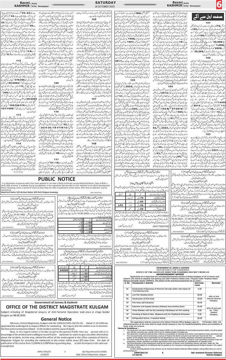 Bazam Kashmir Page: 6 October 18, 2025 << First << 6 >> Last >> Page 1Page 2Page 3Page 4Page 5Page 6Page 7Page 8 × Bazam Kashmir B -6 B -1B -2B -3B -4B -5B -6B -7B -8
