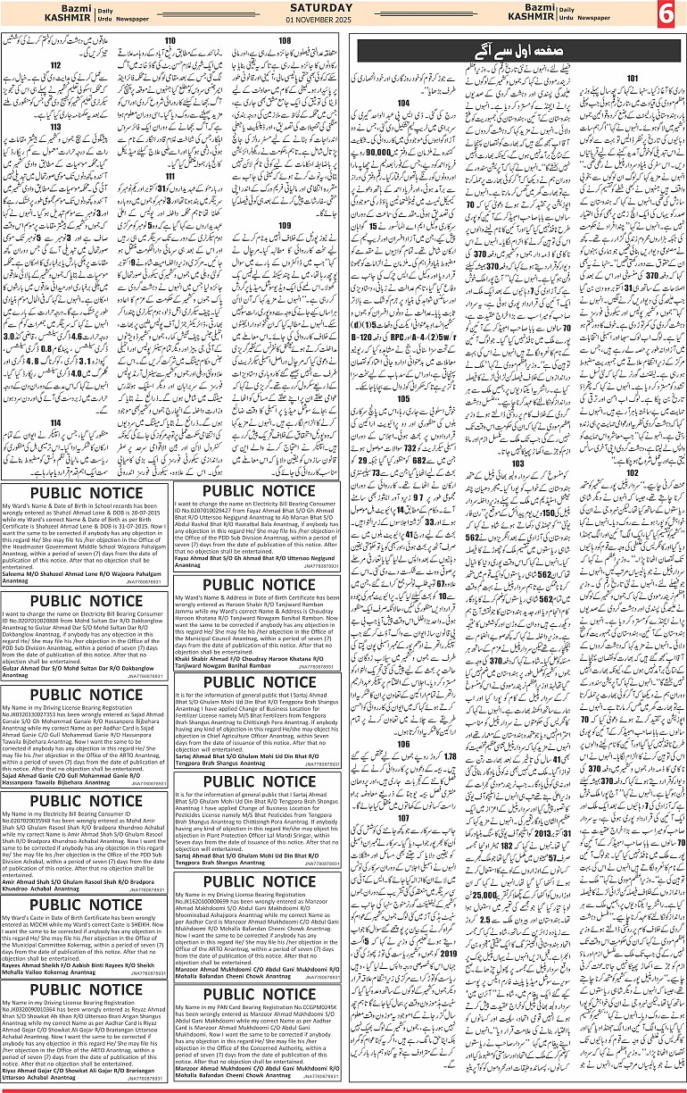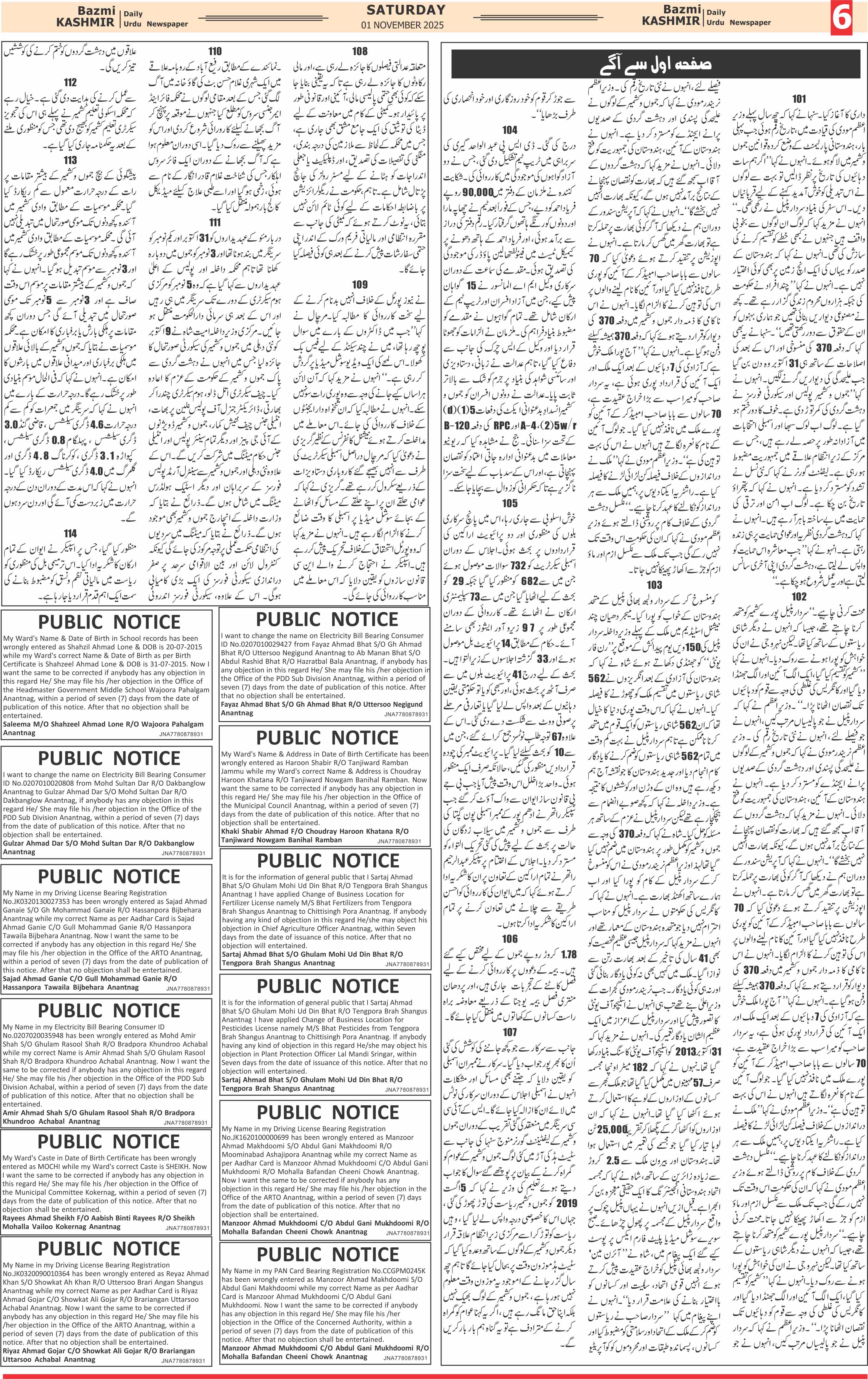 Bazam Kashmir Page: 6 November 01, 2025 << First << 6 >> Last >> Page 1Page 2Page 3Page 4Page 5Page 6Page 7Page 8 × Bazam Kashmir B -6 B -1B -2B -3B -4B -5B -6B -7B -8