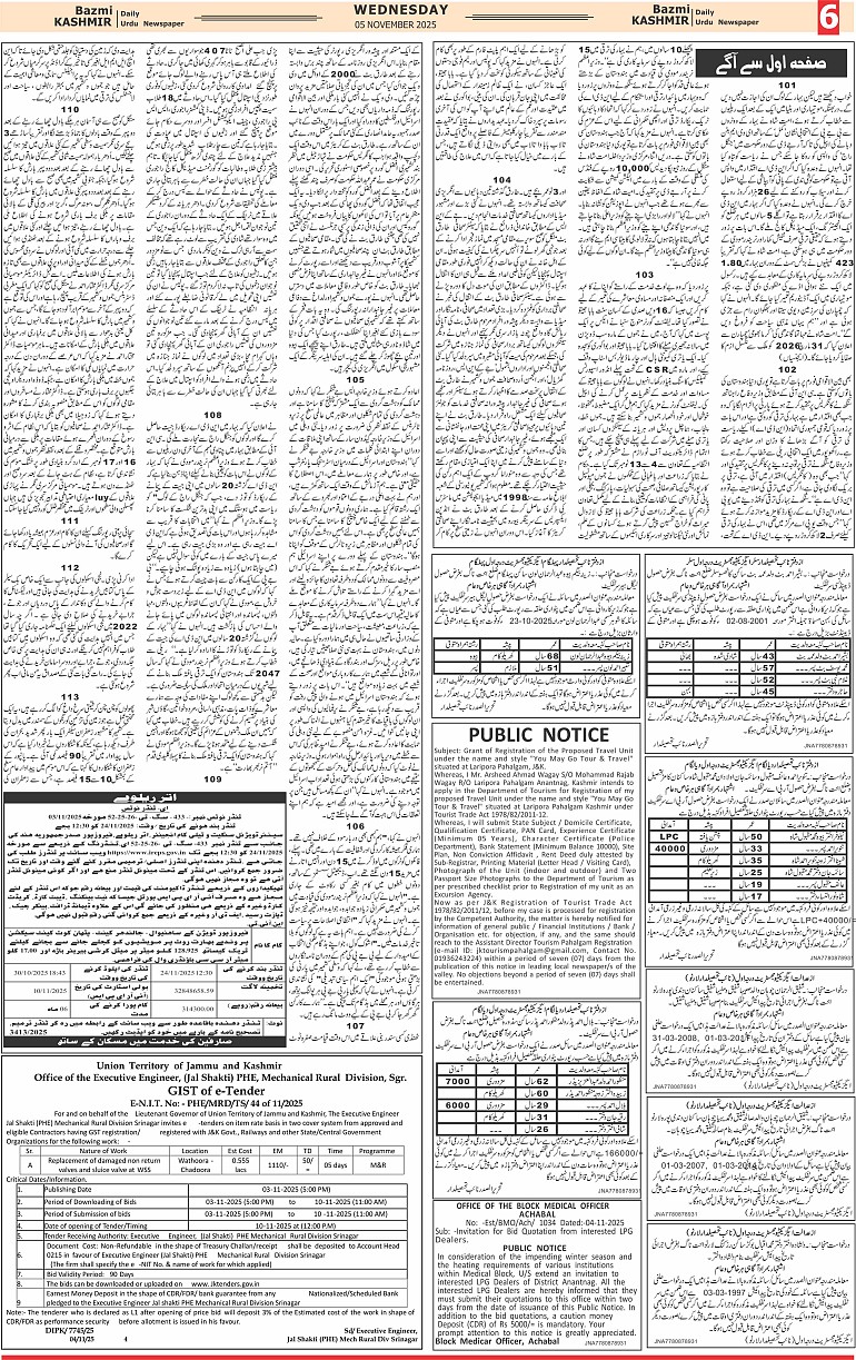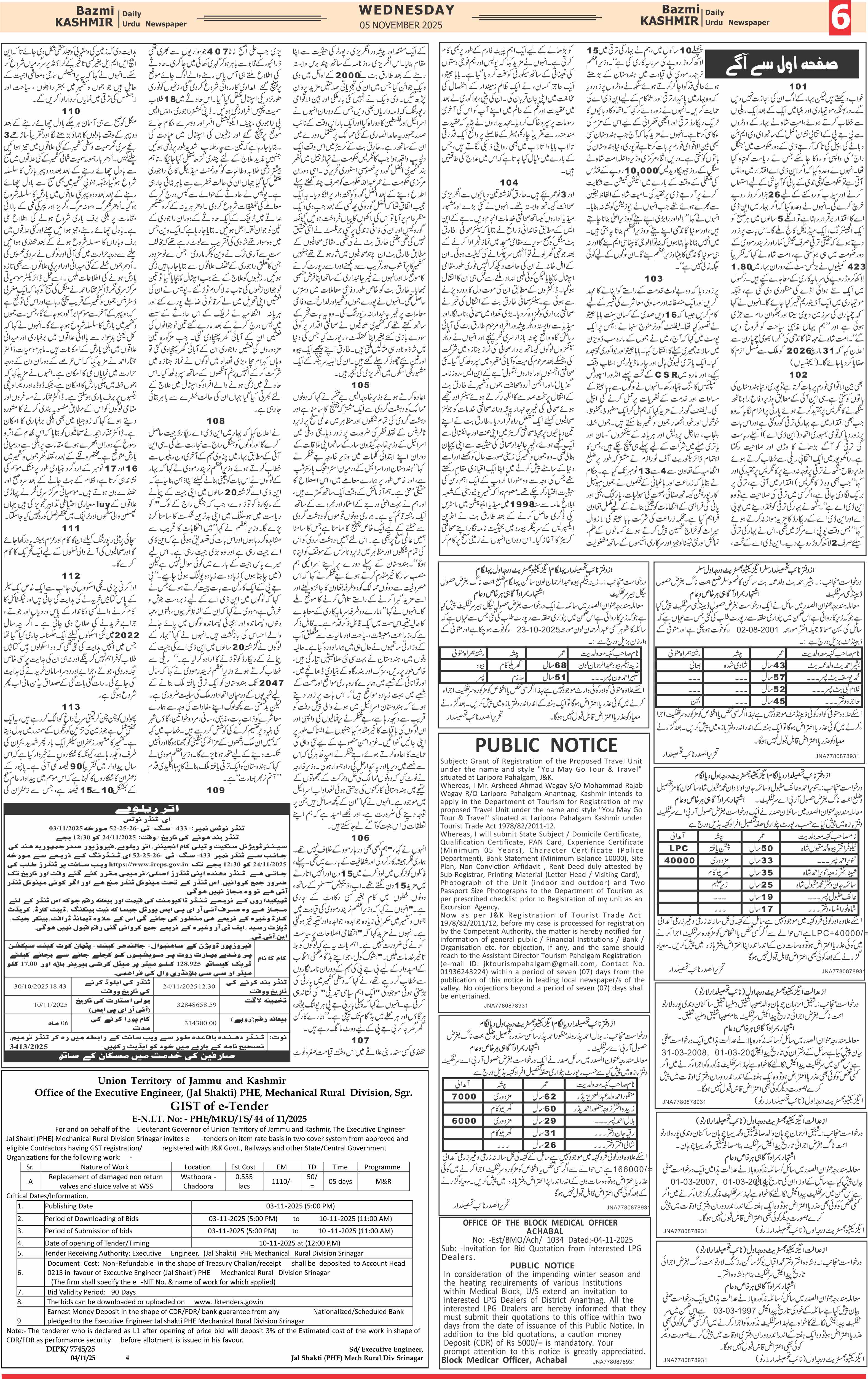 Bazam Kashmir Page: 6 November 05, 2025 << First << 6 >> Last >> Page 1Page 2Page 3Page 4Page 5Page 6Page 7Page 8 × Bazam Kashmir B -6 B -1B -2B -3B -4B -5B -6B -7B -8