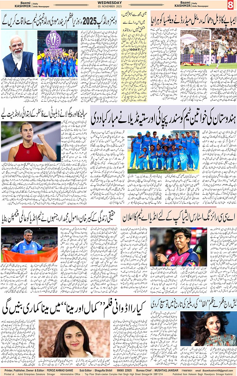Bazam Kashmir Page: 8 November 05, 2025 << First << 8 >> Last >> Page 1Page 2Page 3Page 4Page 5Page 6Page 7Page 8 × Bazam Kashmir B -8 B -1B -2B -3B -4B -5B -6B -7B -8