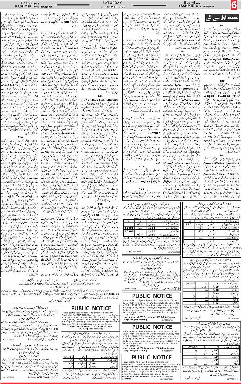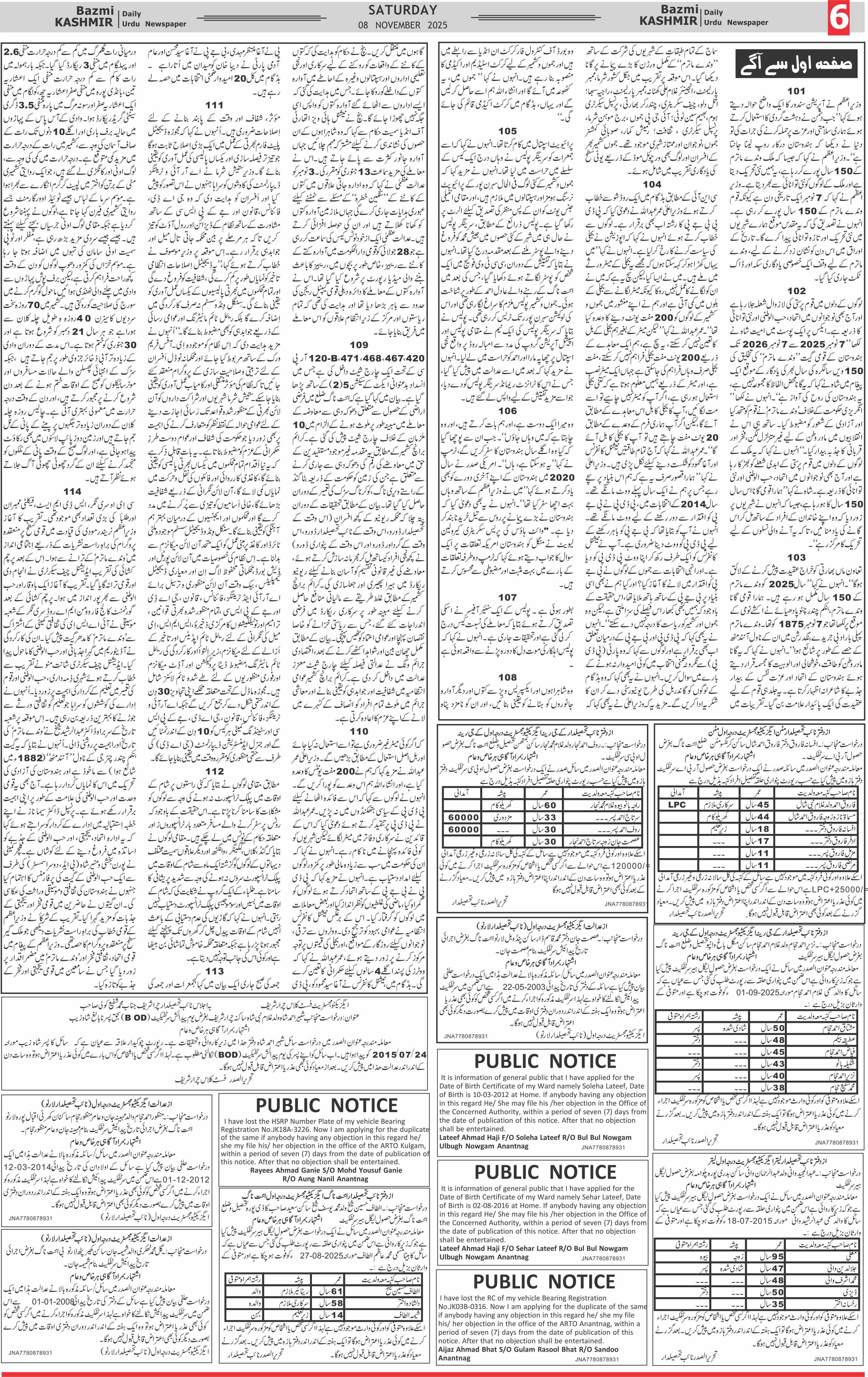 Bazam Kashmir Page: 6 November 08, 2025 << First << 6 >> Last >> Page 1Page 2Page 3Page 4Page 5Page 6Page 7Page 8 × Bazam Kashmir B -6 B -1B -2B -3B -4B -5B -6B -7B -8