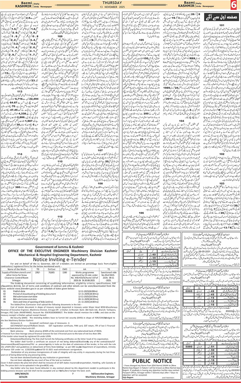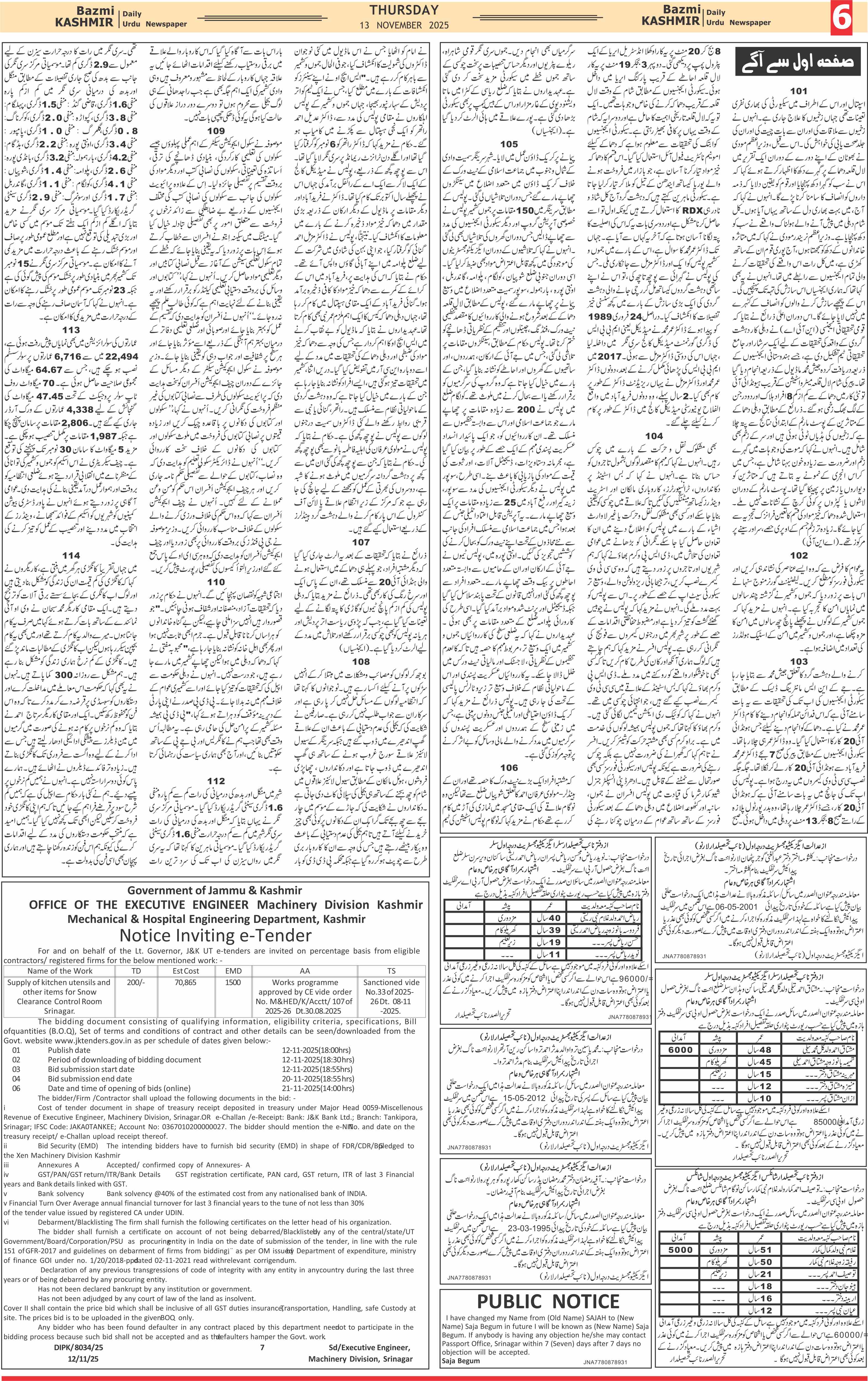 Bazam Kashmir Page: 6 November 13, 2025 << First << 6 >> Last >> Page 1Page 2Page 3Page 4Page 5Page 6Page 7Page 8 × Bazam Kashmir B -6 B -1B -2B -3B -4B -5B -6B -7B -8