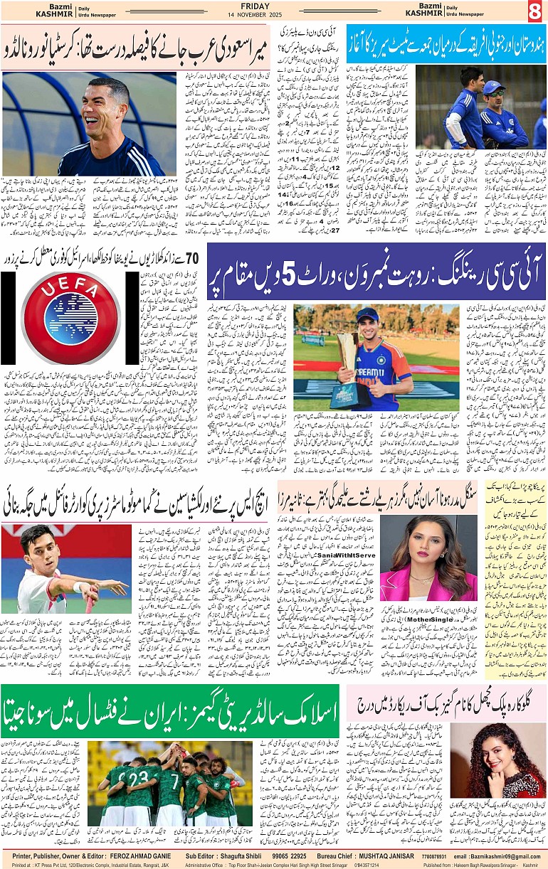 Bazam Kashmir Page: 8 November 14, 2025 << First << 8 >> Last >> Page 1Page 2Page 3Page 4Page 5Page 6Page 7Page 8 × Bazam Kashmir B -8 B -1B -2B -3B -4B -5B -6B -7B -8