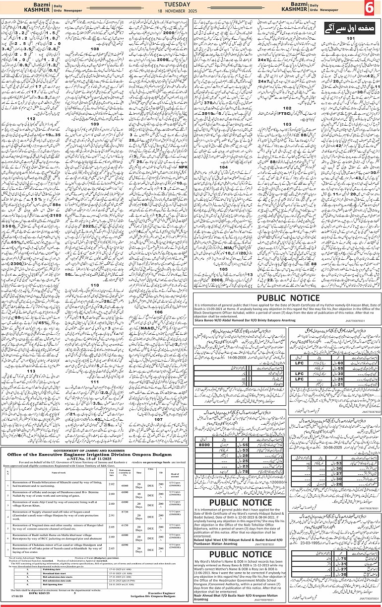 Bazam Kashmir Page: 6 November 18, 2025 << First << 6 >> Last >> Page 1Page 2Page 3Page 4Page 5Page 6Page 7Page 8 × Bazam Kashmir B -6 B -1B -2B -3B -4B -5B -6B -7B -8