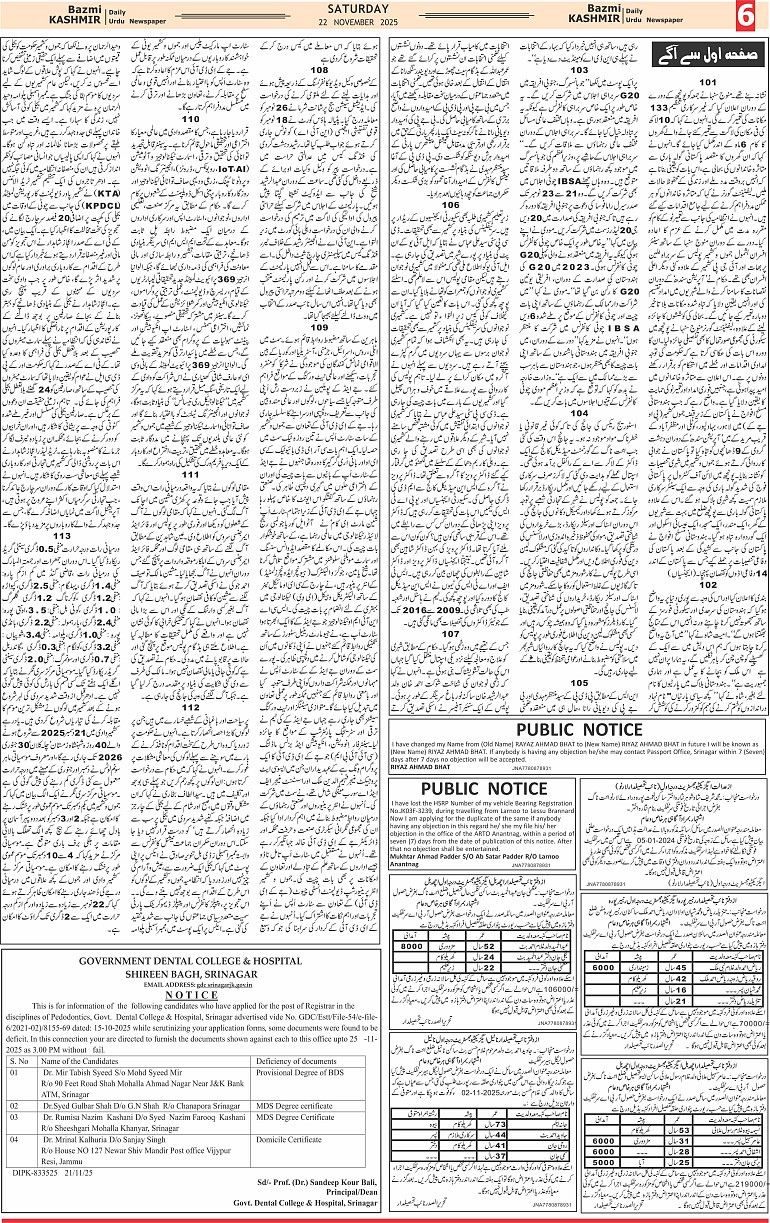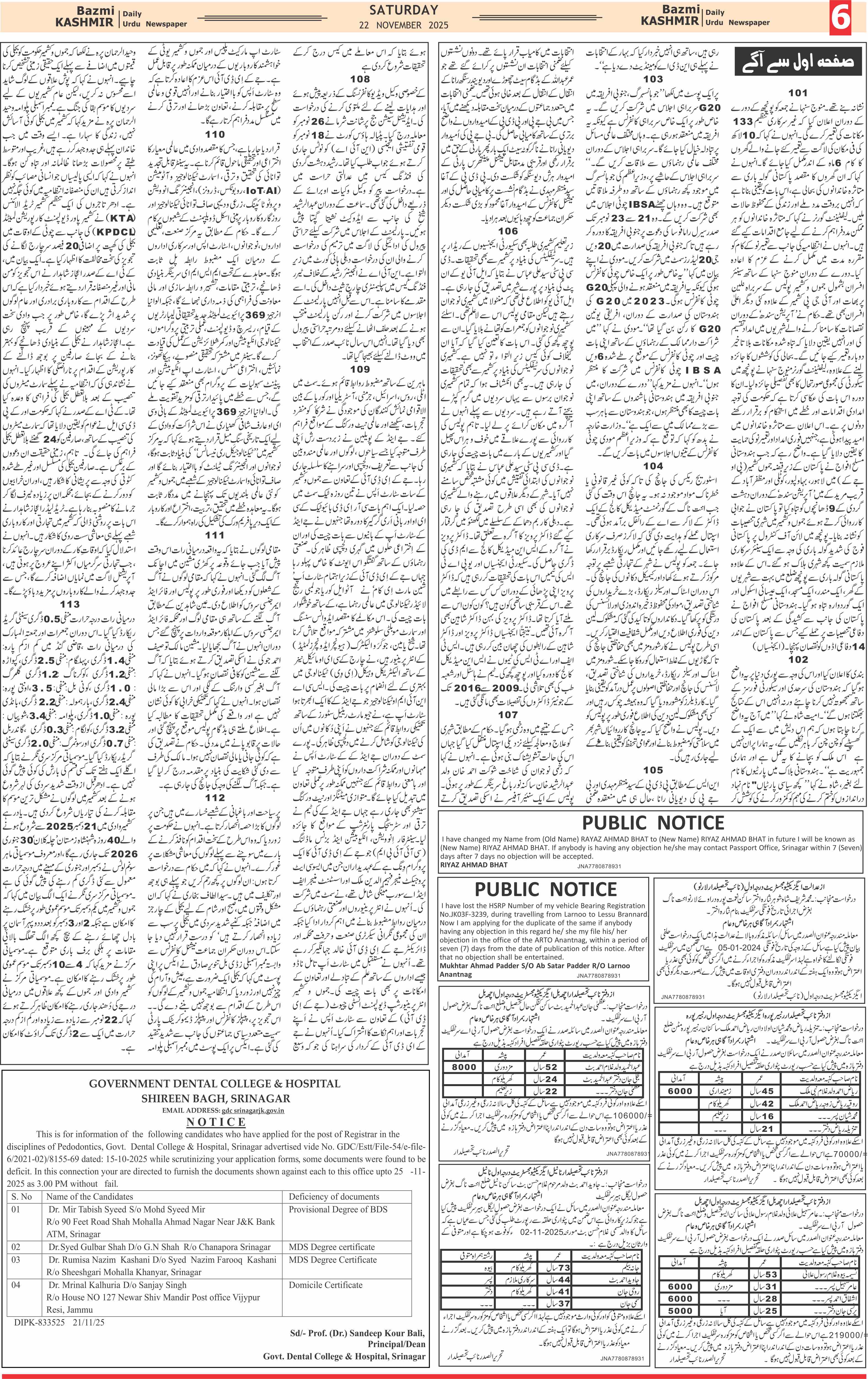 Bazam Kashmir Page: 6 November 22, 2025 << First << 6 >> Last >> Page 1Page 2Page 3Page 4Page 5Page 6Page 7Page 8 × Bazam Kashmir B -6 B -1B -2B -3B -4B -5B -6B -7B -8
