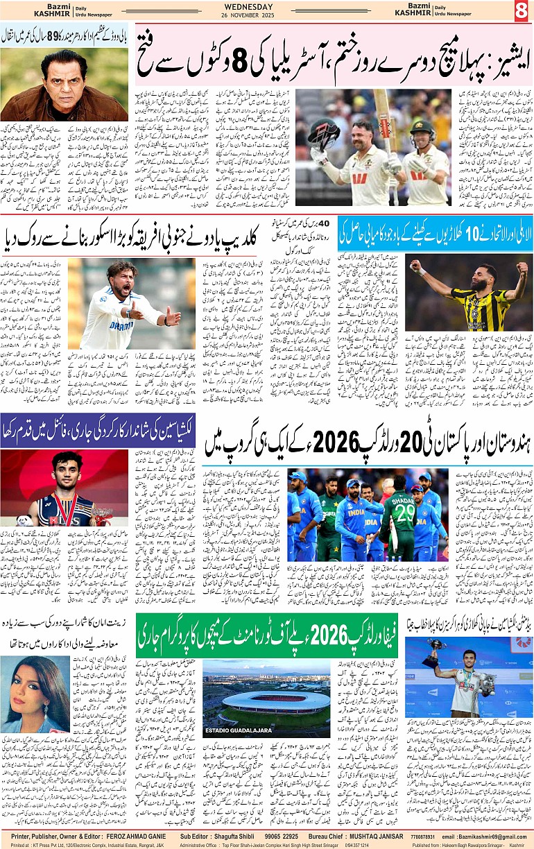 Bazam Kashmir Page: 8 November 26, 2025 << First << 8 >> Last >> Page 1Page 2Page 3Page 4Page 5Page 6Page 7Page 8 × Bazam Kashmir B -8 B -1B -2B -3B -4B -5B -6B -7B -8