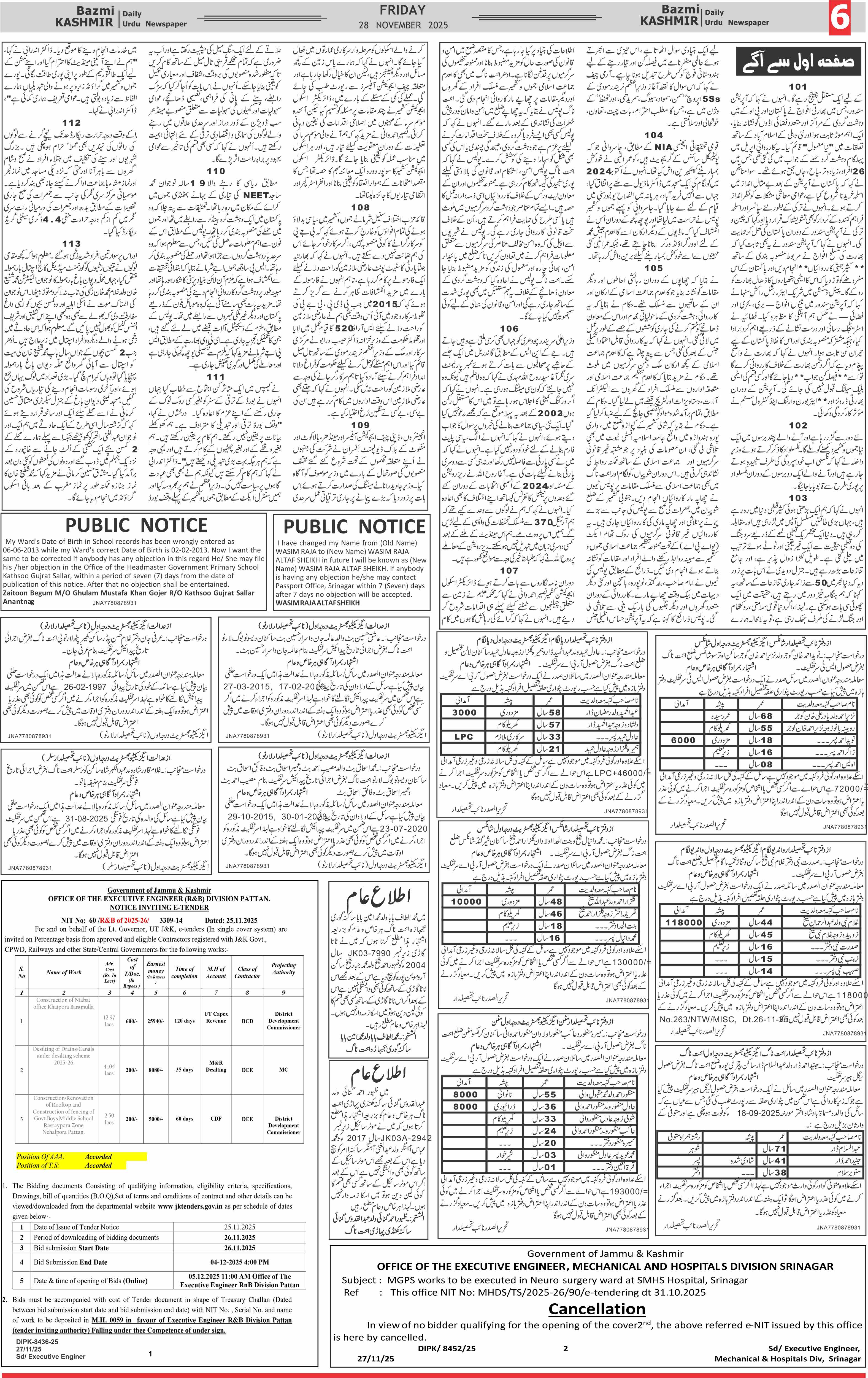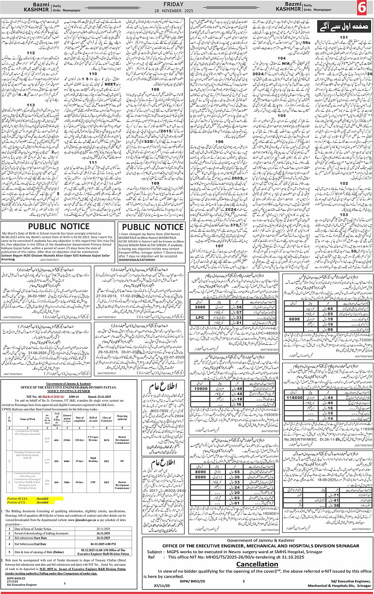 Bazam Kashmir Page: 6 November 28, 2025 << First << 6 >> Last >> Page 1Page 2Page 3Page 4Page 5Page 6Page 7Page 8 × Bazam Kashmir B -6 B -1B -2B -3B -4B -5B -6B -7B -8