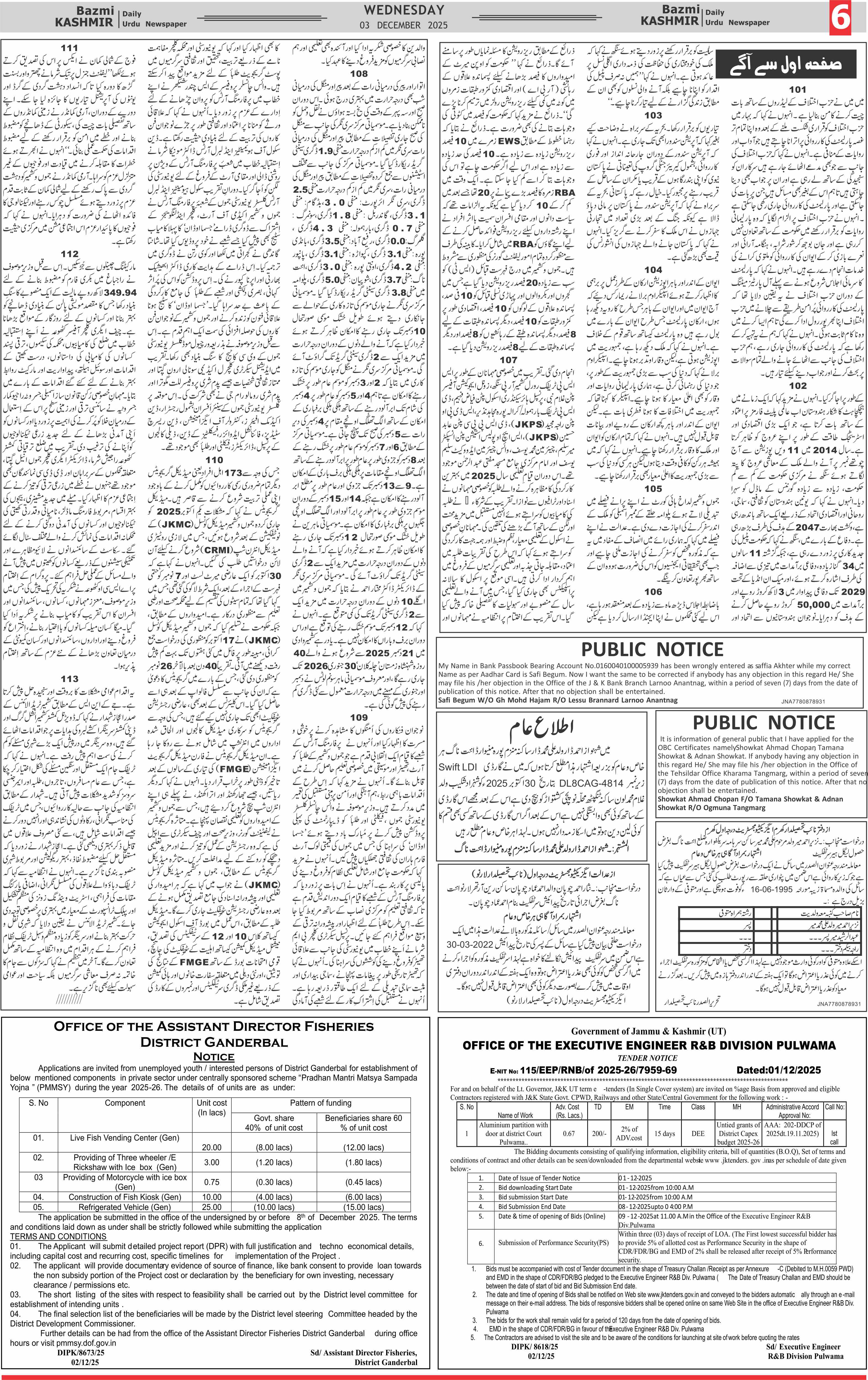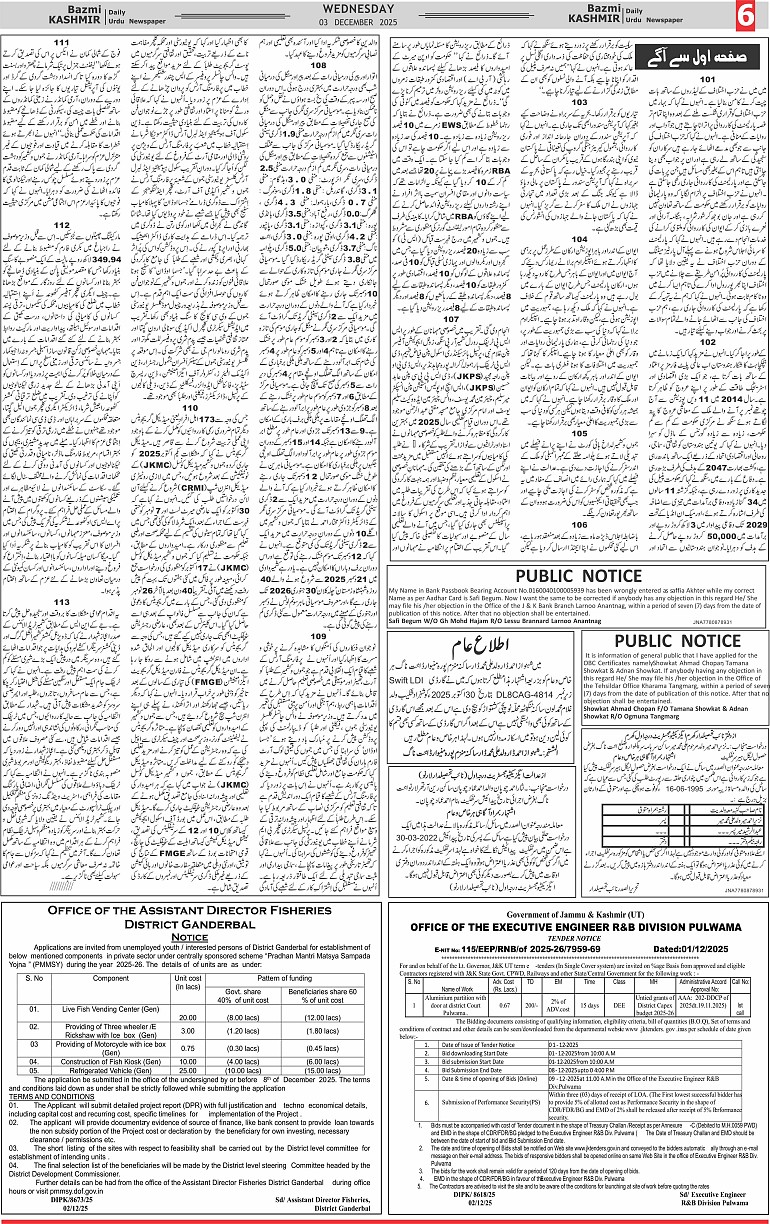 Bazam Kashmir Page: 6 December 03, 2025 << First << 6 >> Last >> Page 1Page 2Page 3Page 4Page 5Page 6Page 7Page 8 × Bazam Kashmir B -6 B -1B -2B -3B -4B -5B -6B -7B -8