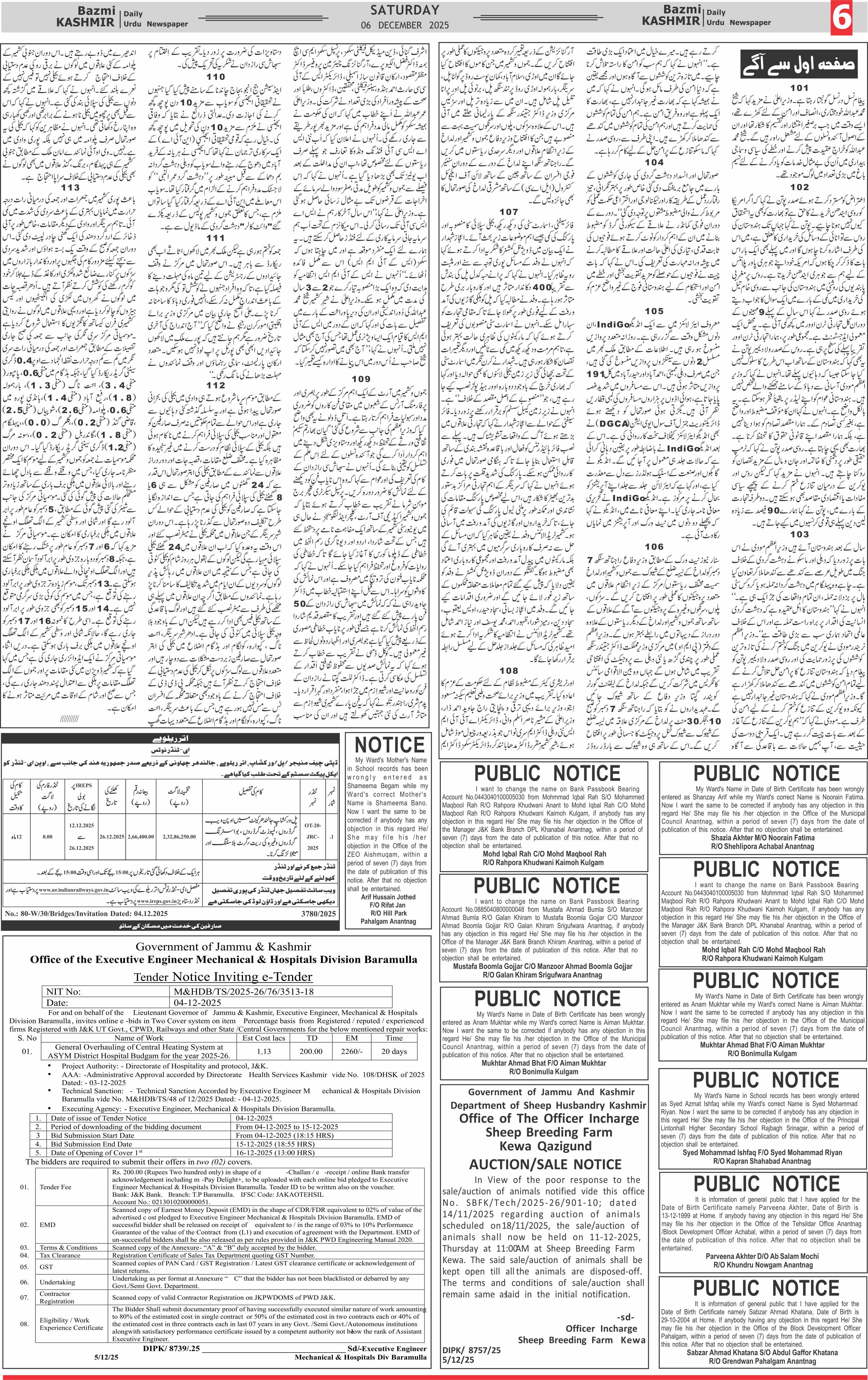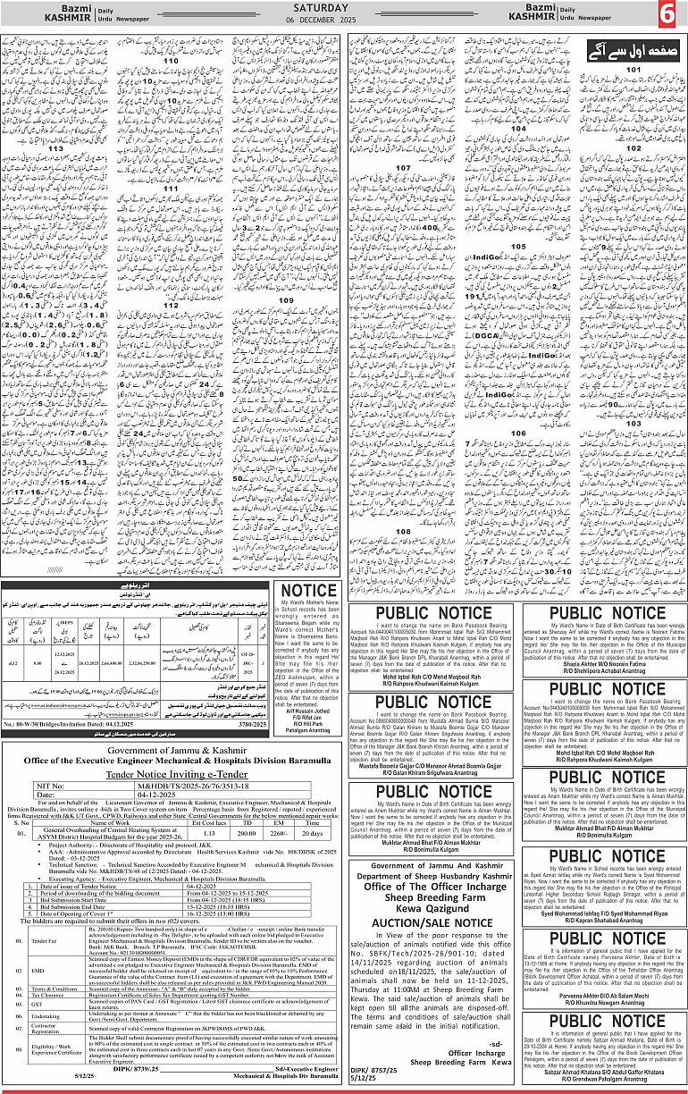 Bazam Kashmir Page: 6 December 06, 2025 << First << 6 >> Last >> Page 1Page 2Page 3Page 4Page 5Page 6Page 7Page 8 × Bazam Kashmir B -6 B -1B -2B -3B -4B -5B -6B -7B -8