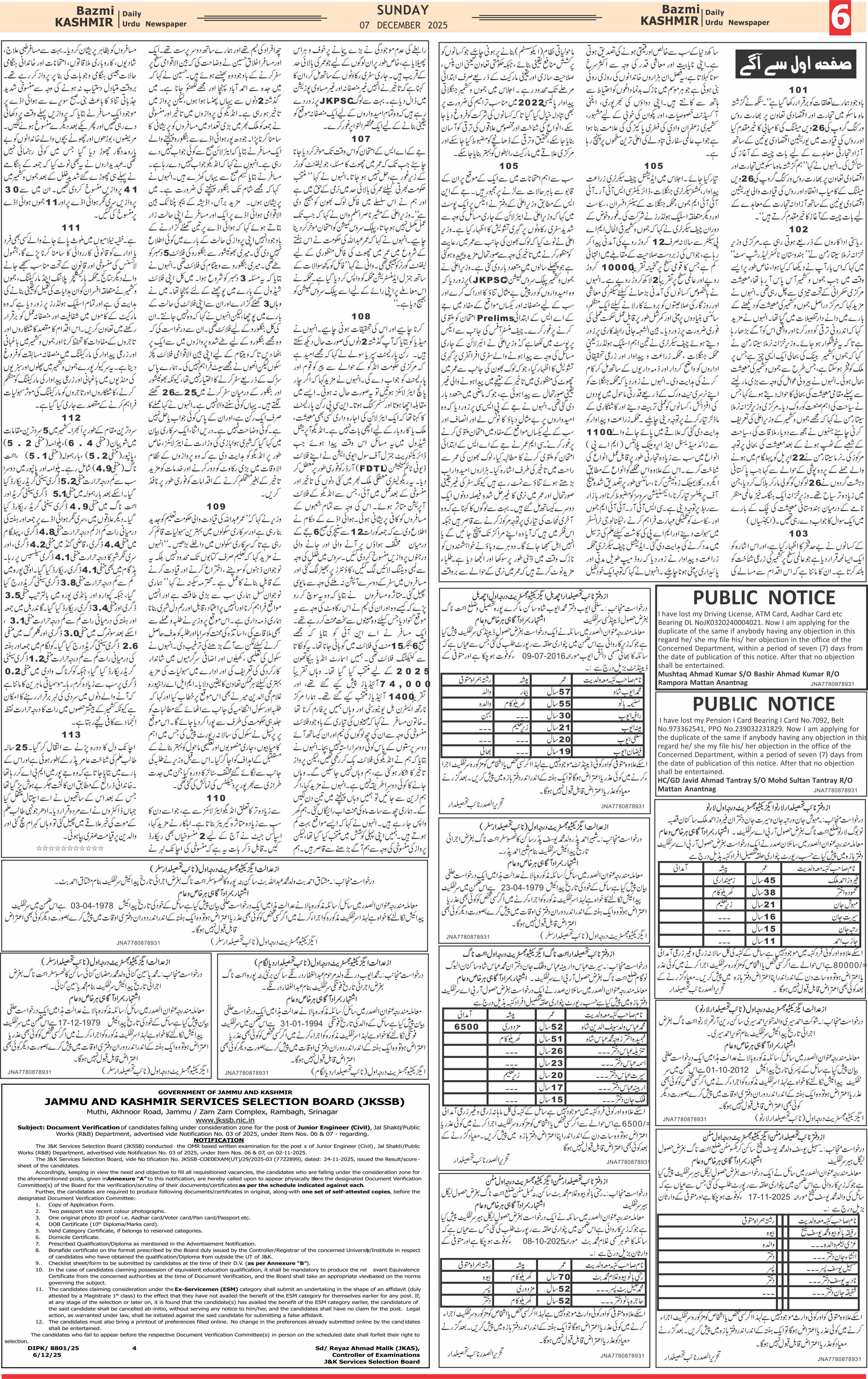 Bazam Kashmir Page: 6 December 07, 2025 << First << 6 >> Last >> Page 1Page 2Page 3Page 4Page 5Page 6Page 7Page 8 × Bazam Kashmir B -6 B -1B -2B -3B -4B -5B -6B -7B -8