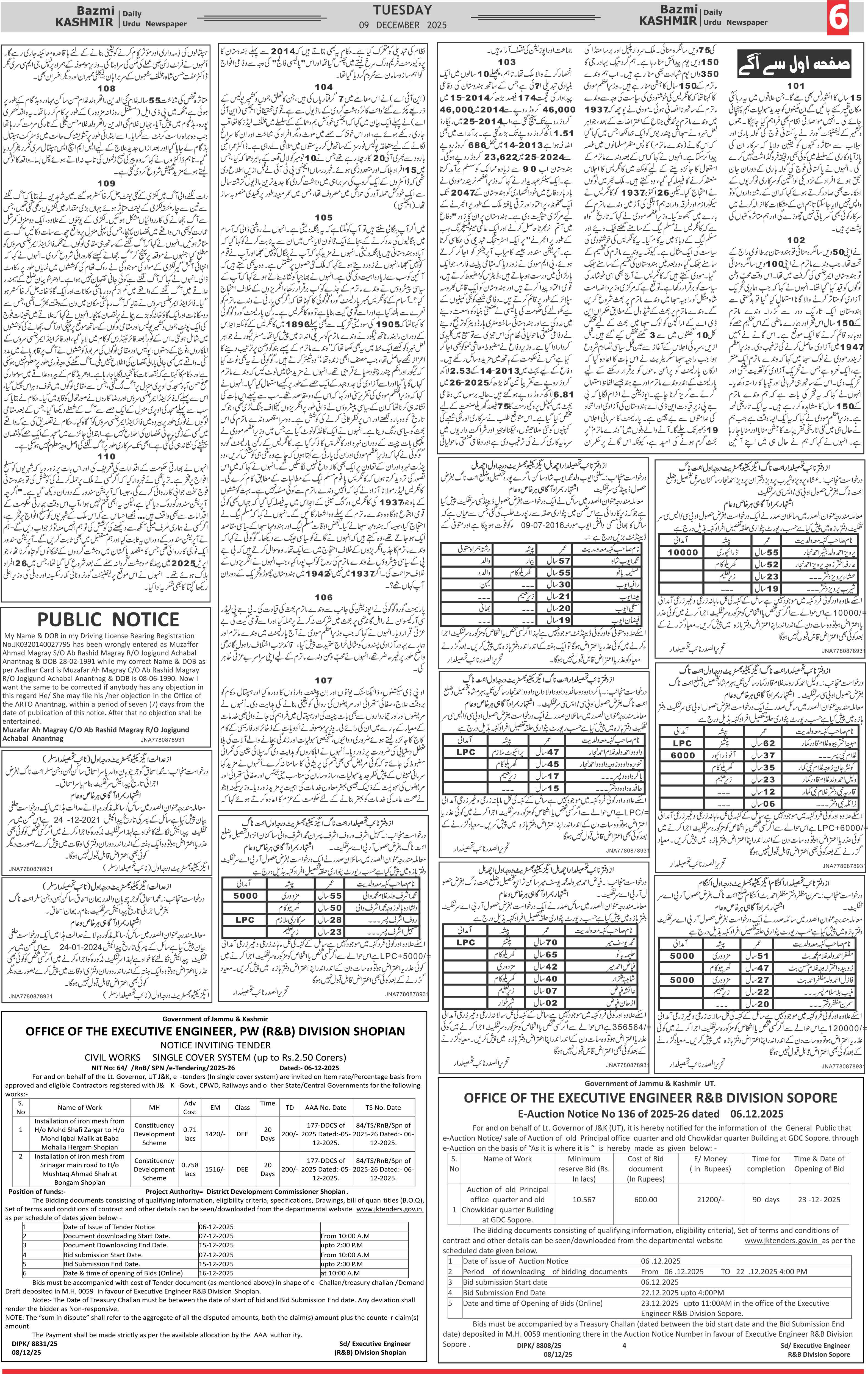 Bazam Kashmir Page: 6 December 09, 2025 << First << 6 >> Last >> Page 1Page 2Page 3Page 4Page 5Page 6Page 7Page 8 × Bazam Kashmir B -6 B -1B -2B -3B -4B -5B -6B -7B -8