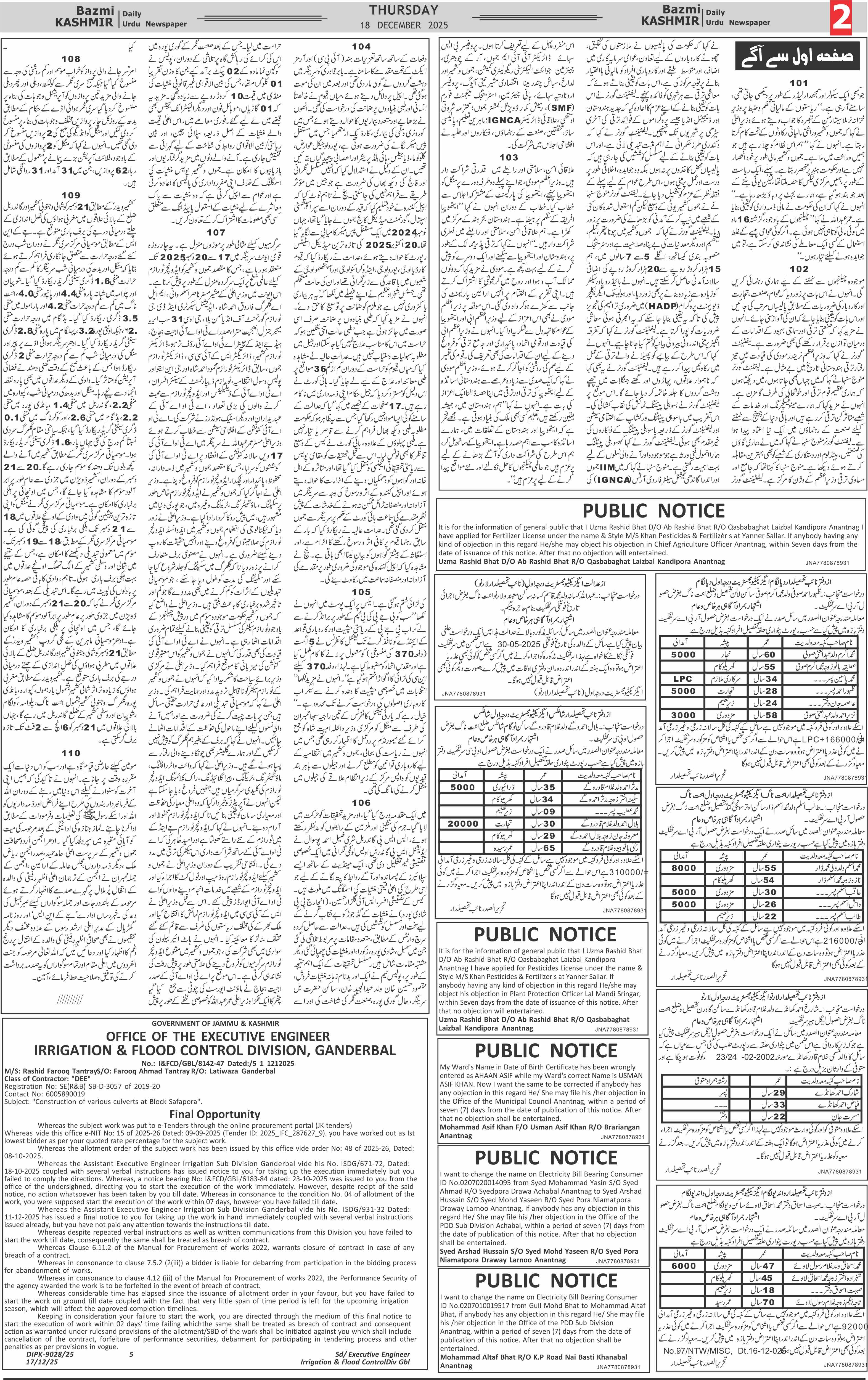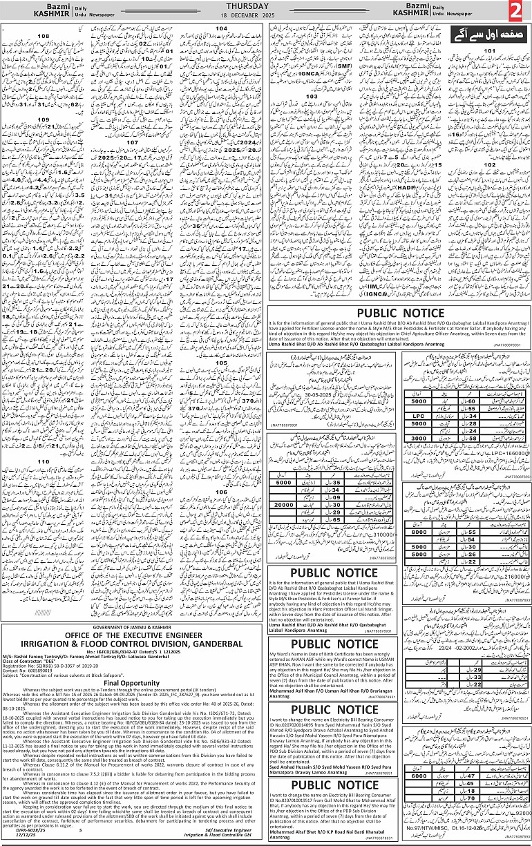 Bazam Kashmir Page: 6 December 18, 2025 << First << 6 >> Last >> Page 1Page 2Page 3Page 4Page 5Page 6Page 7Page 8 × Bazam Kashmir B -6 B -1B -2B -3B -4B -5B -6B -7B -8