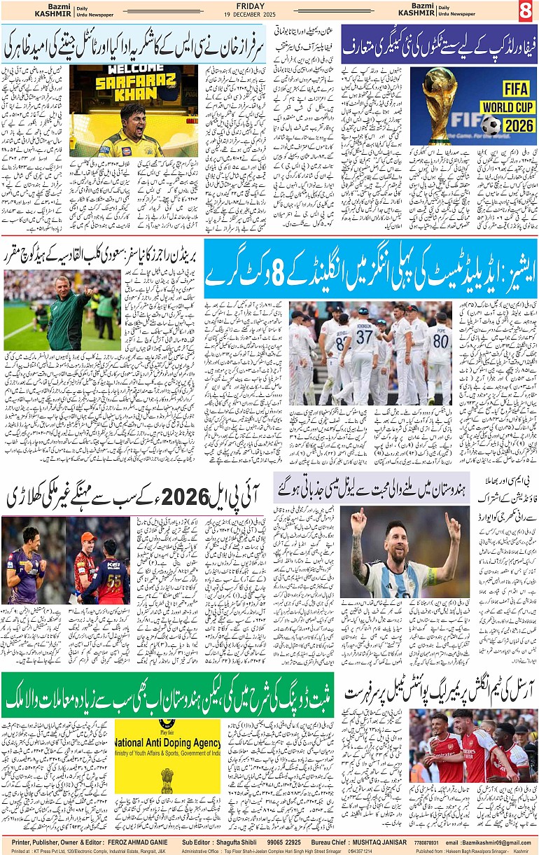 Bazam Kashmir Page: 8 December 19, 2025 << First << 8 >> Last >> Page 1Page 2Page 3Page 4Page 5Page 6Page 7Page 8 × Bazam Kashmir B -8 B -1B -2B -3B -4B -5B -6B -7B -8
