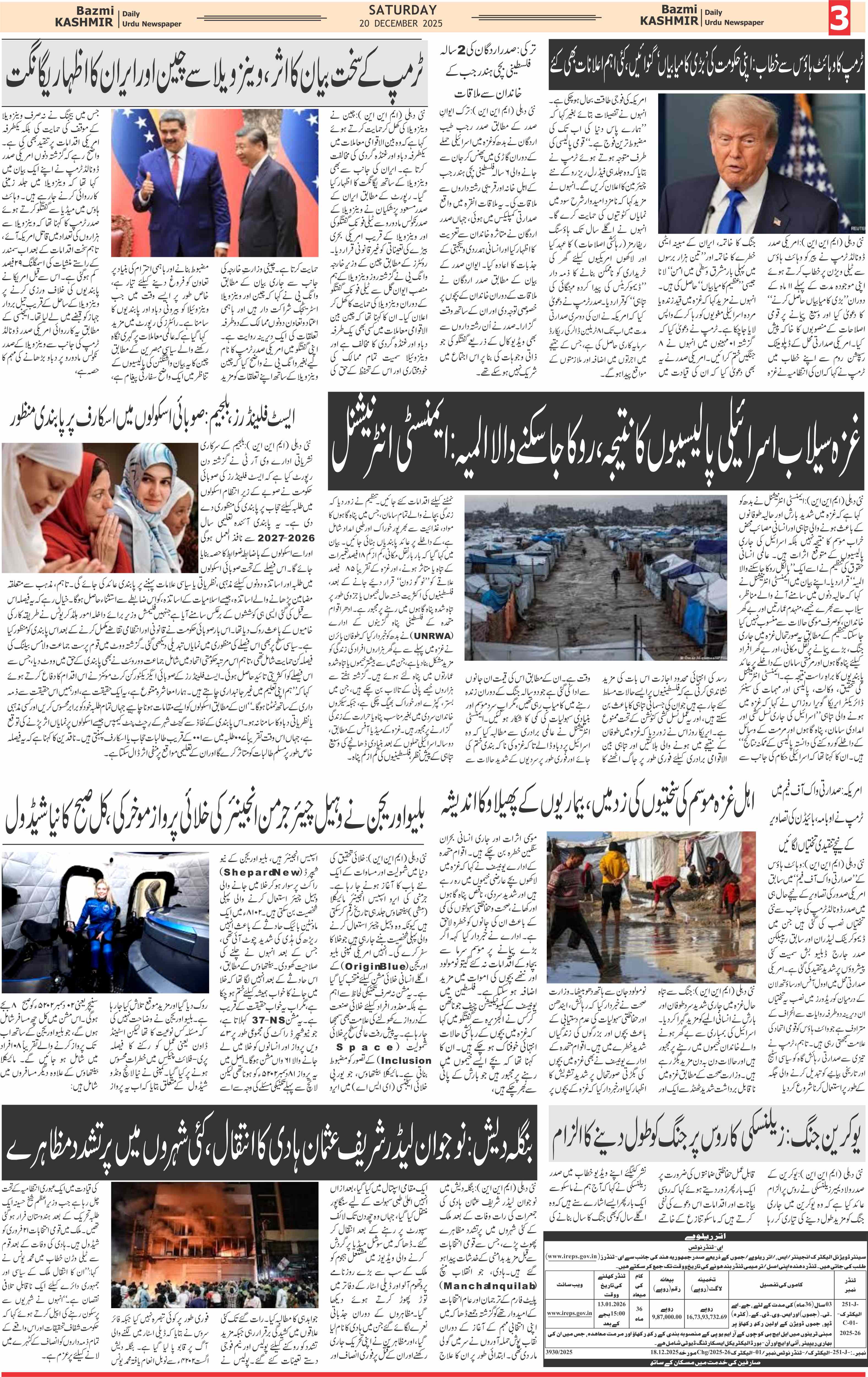 Bazam Kashmir Page: 3 December 20, 2025 << First << 3 >> Last >> Page 1Page 2Page 3Page 4Page 5Page 6Page 7Page 8 × Bazam Kashmir B -3 B -1B -2B -3B -4B -5B -6B -7B -8