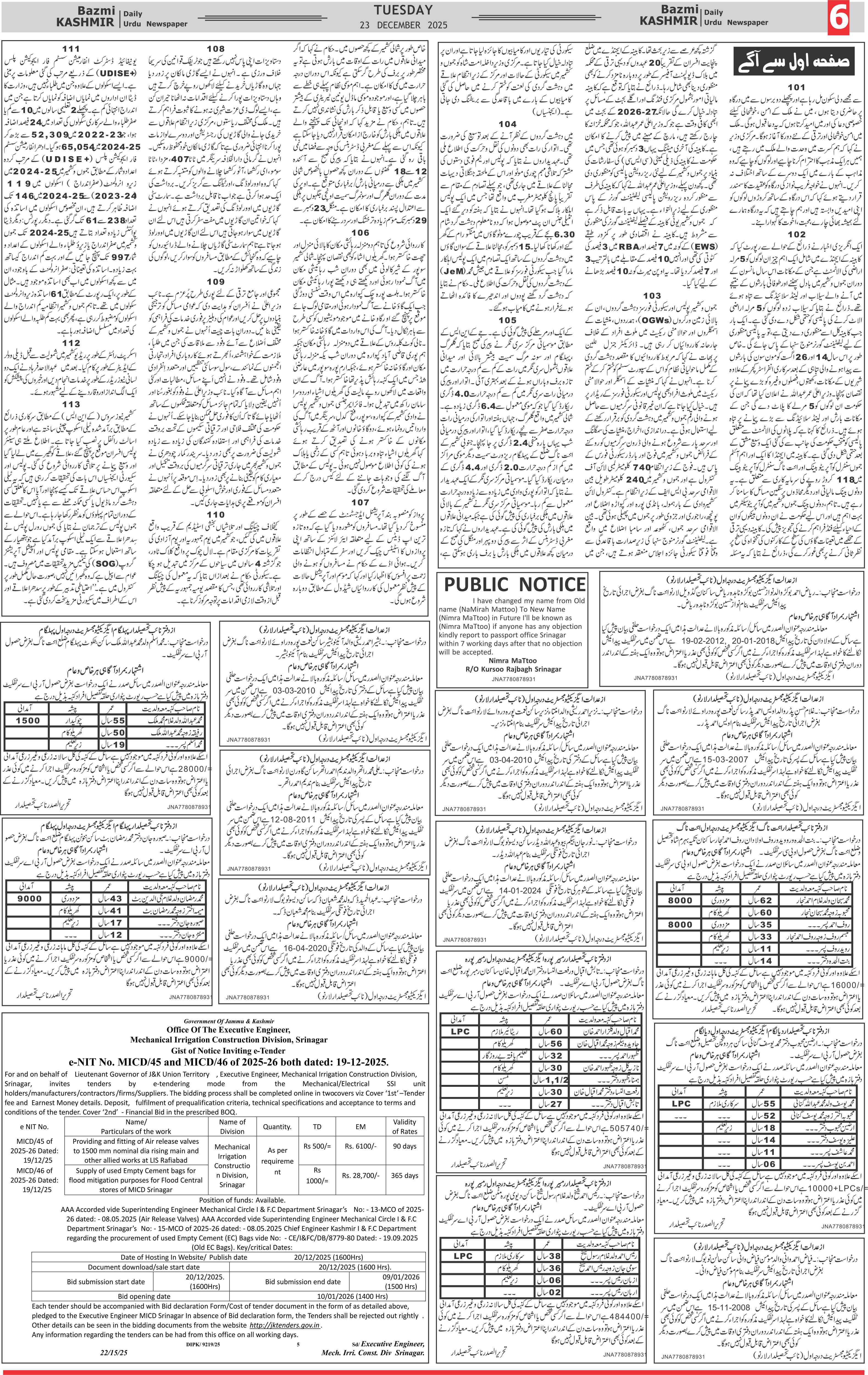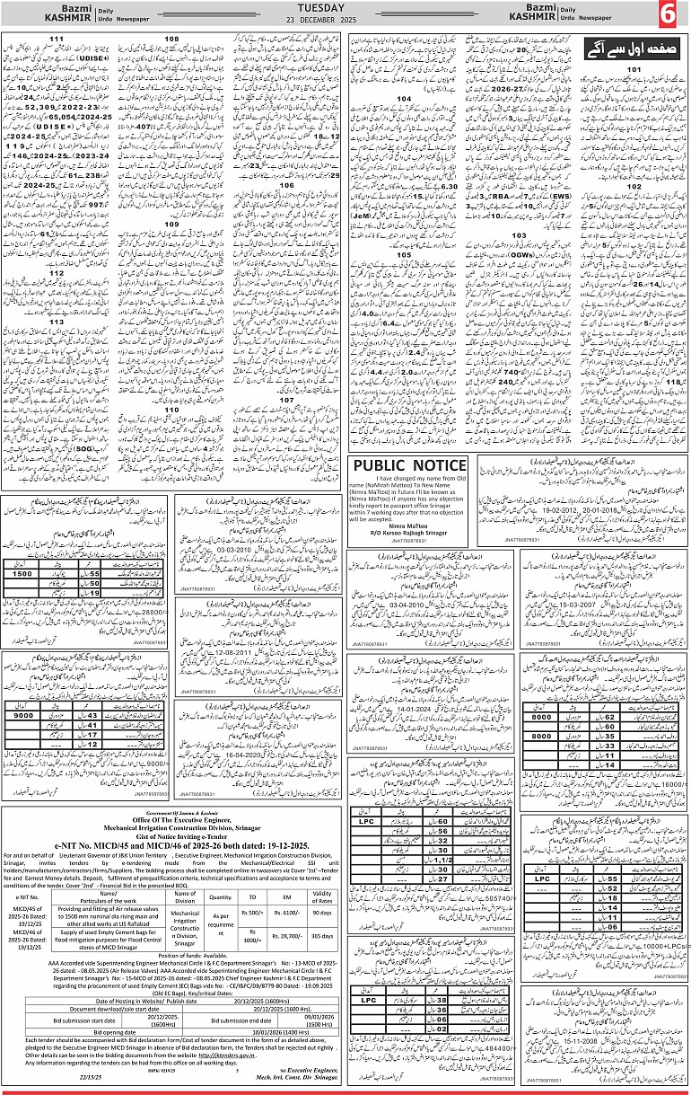 Bazam Kashmir Page: 6 December 23, 2025 << First << 6 >> Last >> Page 1Page 2Page 3Page 4Page 5Page 6Page 7Page 8 × Bazam Kashmir B -6 B -1B -2B -3B -4B -5B -6B -7B -8