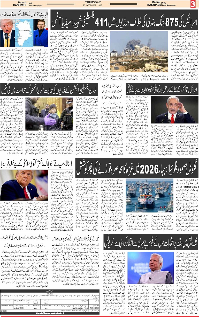 Bazam Kashmir Page: 3 December 25, 2025 << First << 3 >> Last >> Page 1Page 2Page 3Page 4Page 5Page 6Page 7Page 8 × Bazam Kashmir B -3 B -1B -2B -3B -4B -5B -6B -7B -8