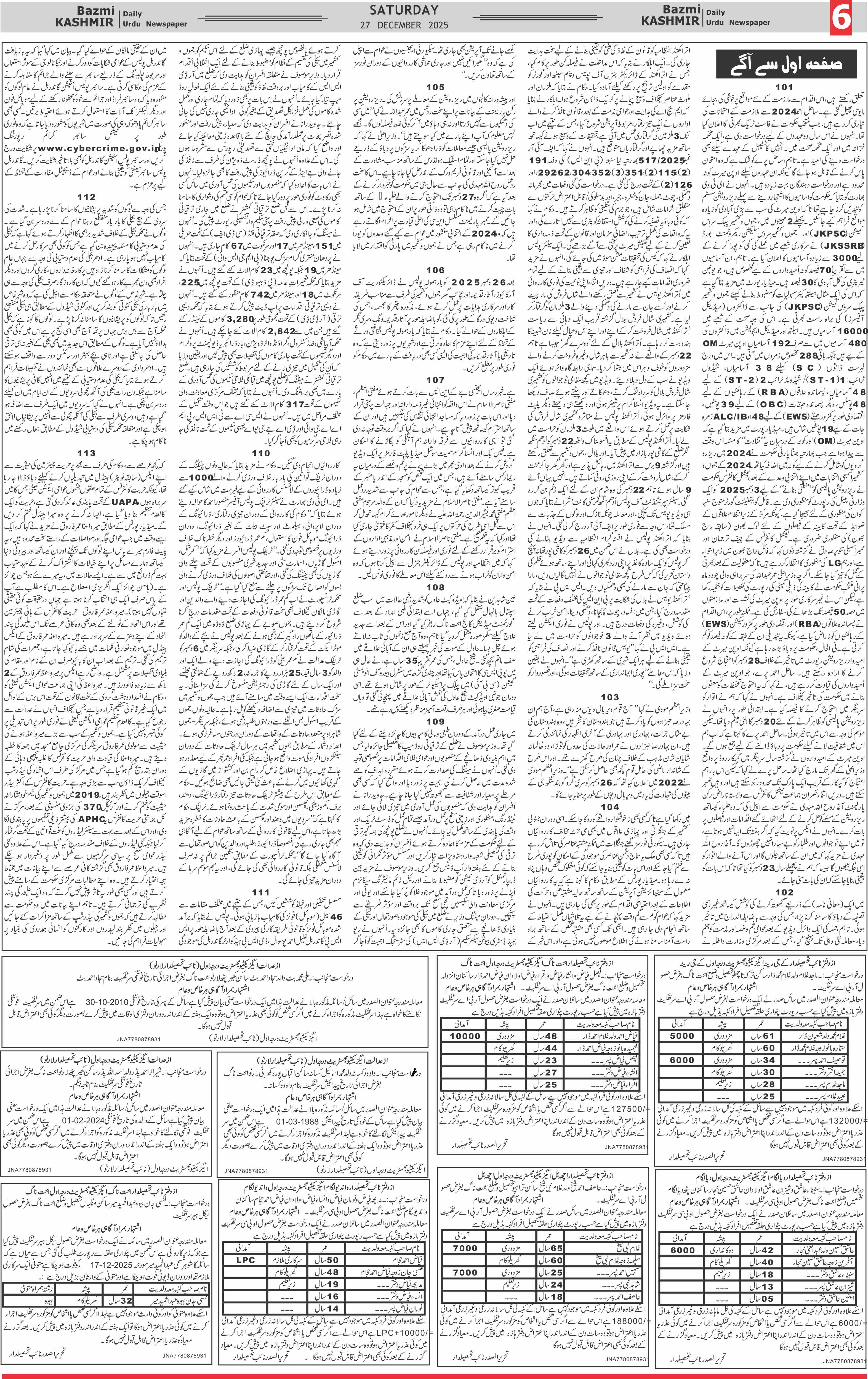 Bazam Kashmir Page: 6 December 27, 2025 << First << 6 >> Last >> Page 1Page 2Page 3Page 4Page 5Page 6Page 7Page 8 × Bazam Kashmir B -6 B -1B -2B -3B -4B -5B -6B -7B -8