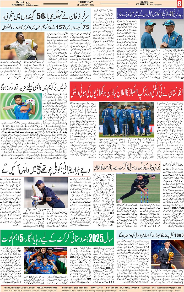 Bazam Kashmir Page: 8 January 01, 2026 << First << 8 >> Last >> Page 1Page 2Page 3Page 4Page 5Page 6Page 7Page 8 × Bazam Kashmir B -8 B -1B -2B -3B -4B -5B -6B -7B -8