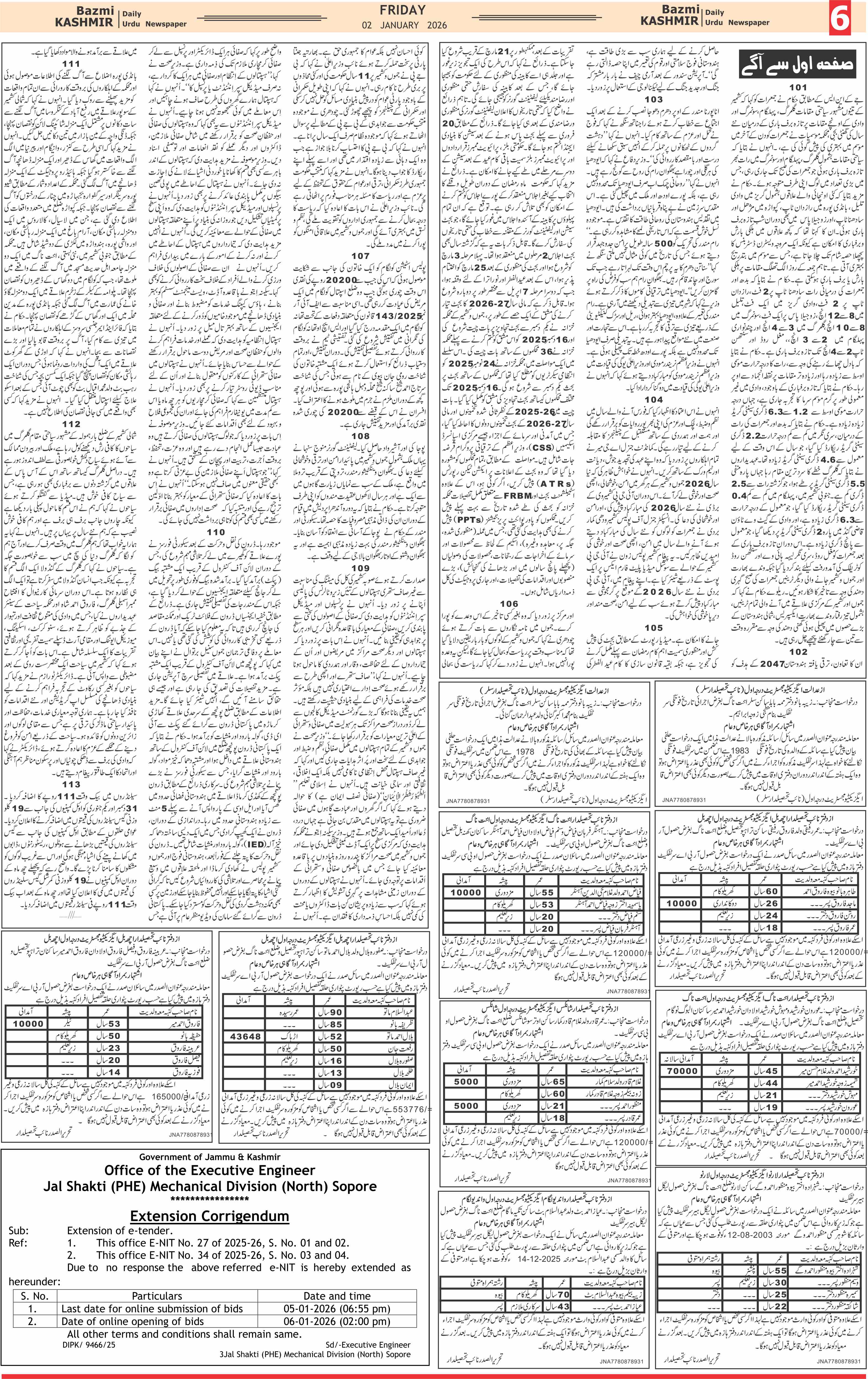 Bazam Kashmir Page: 6 January 02, 2026 << First << 6 >> Last >> Page 1Page 2Page 3Page 4Page 5Page 6Page 7Page 8 × Bazam Kashmir B -6 B -1B -2B -3B -4B -5B -6B -7B -8