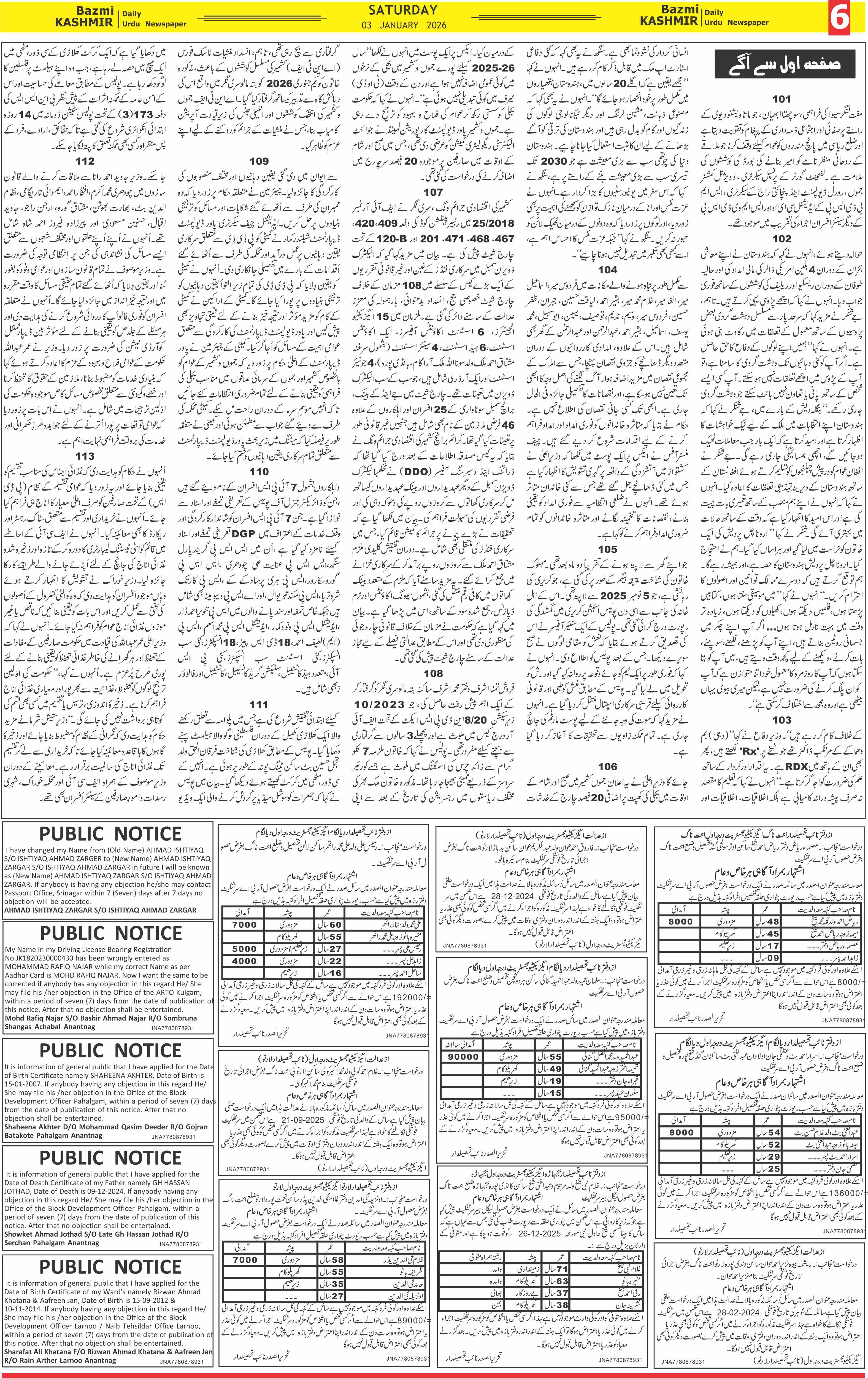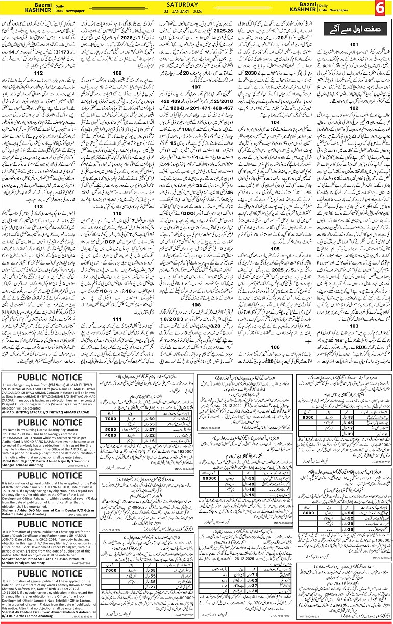 Bazam Kashmir Page: 6 January 03, 2026 << First << 6 >> Last >> Page 1Page 2Page 3Page 4Page 5Page 6Page 7Page 8 × Bazam Kashmir B -6 B -1B -2B -3B -4B -5B -6B -7B -8