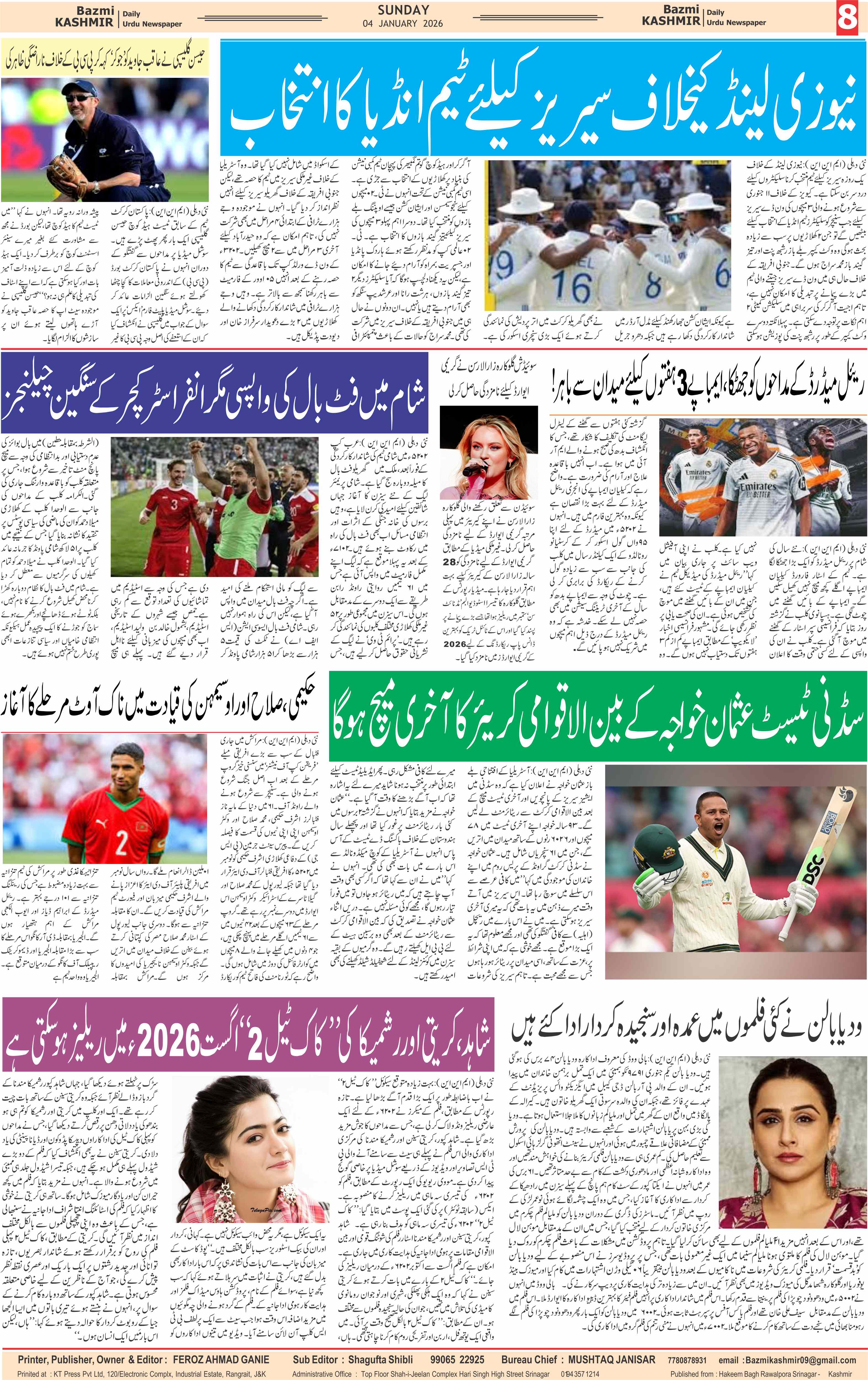Bazam Kashmir Page: 8 January 04, 2026 << First << 8 >> Last >> Page 1Page 2Page 3Page 4Page 5Page 6Page 7Page 8 × Bazam Kashmir B -8 B -1B -2B -3B -4B -5B -6B -7B -8