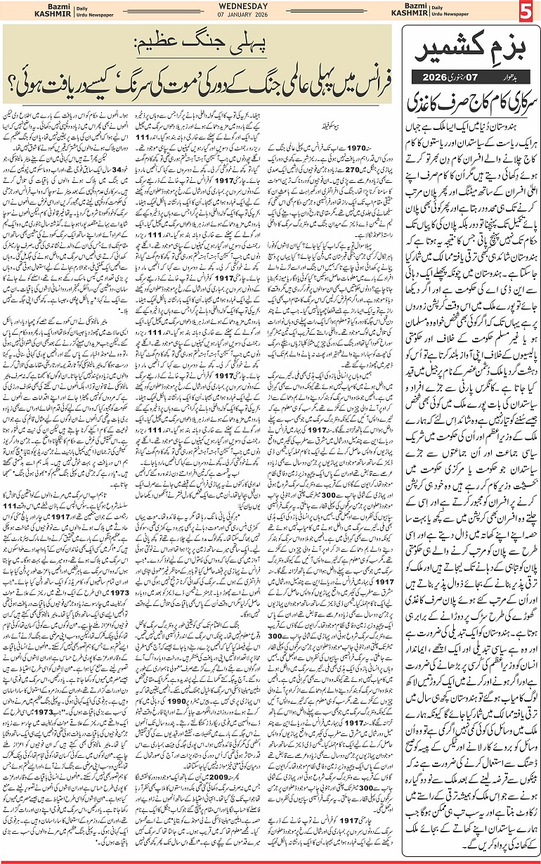Bazam Kashmir Page: 5 January 07, 2026 << First << 5 >> Last >> Page 1Page 2Page 3Page 4Page 5Page 6Page 7Page 8 × Bazam Kashmir B -5 B -1B -2B -3B -4B -5B -6B -7B -8